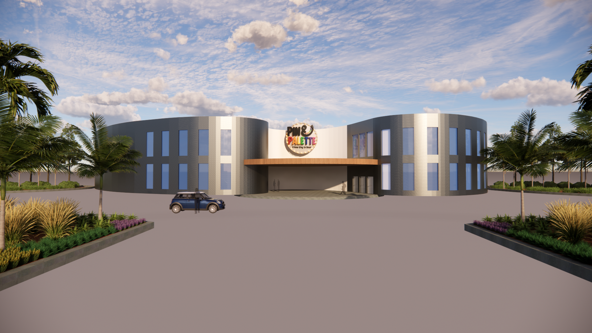 change the image to nighttime include up lighting in the landscape and lighting on the architecture use the image exactly as is do not changed colors or elements