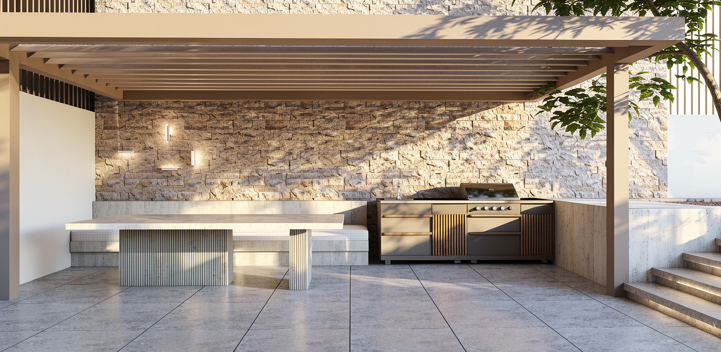 use the materials of the reference image for render add a cloudy sky like the image reference