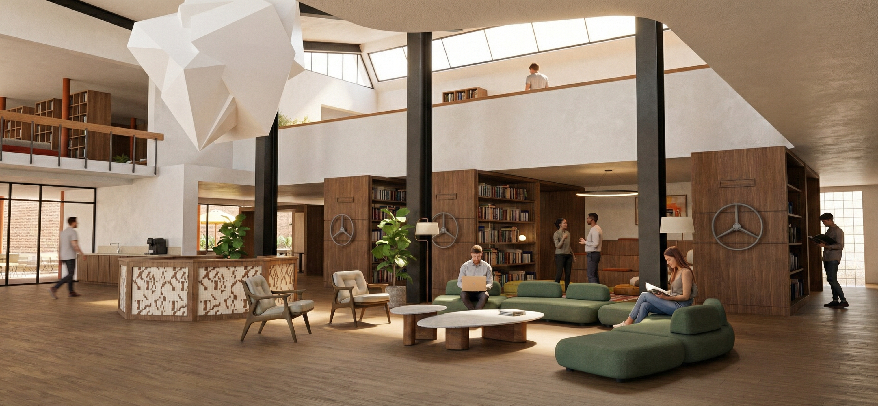please render this image into a realistic interior the sofa is made of a soft light blue wool with the bottom panel made of pleated light blue linen the material for the top of the coffee table is a cream travertine and the legs are made of wood