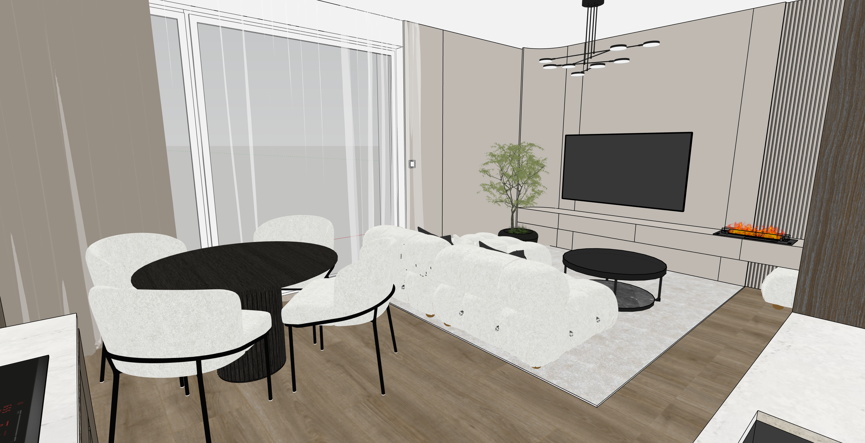 turn the ceiling lamp on 4000k the drawer under the tv the same color as the wall behnd it