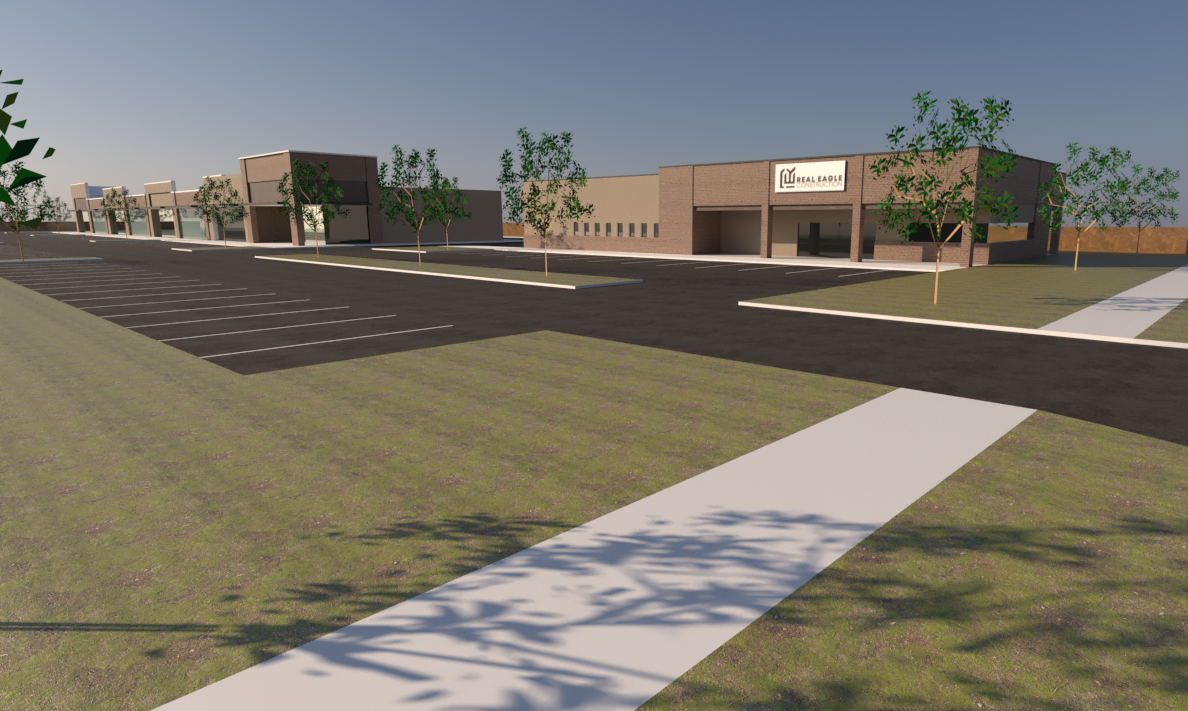 retail shopping center at dusk