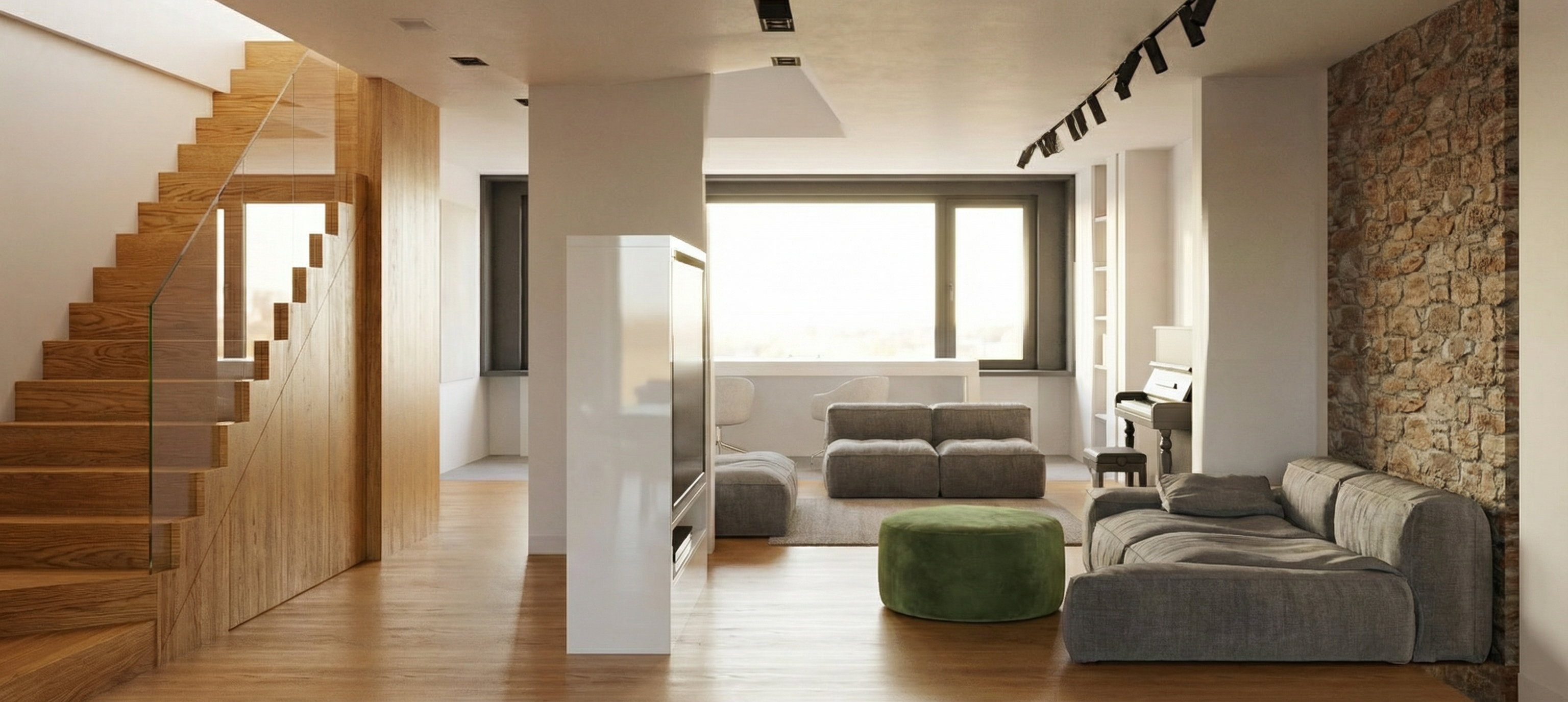 can you render this room to be a warmer colour scheme change the colour of the sofa to an olive green make the walls a soft white neutral cahnge the artwork to match the scheme make the rug a soft neutral with a green pattern to match the sofa add picture frame panelling to fit around the artwork chage the colour of the curtains to match the scheme add a new light fitting to complimant the scheme keep layout and furniture pieces the same