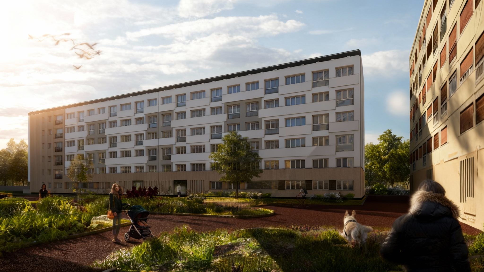 grass lawn to front with feature landscaping colorbond basalt roof black window frames reflective grass bush background