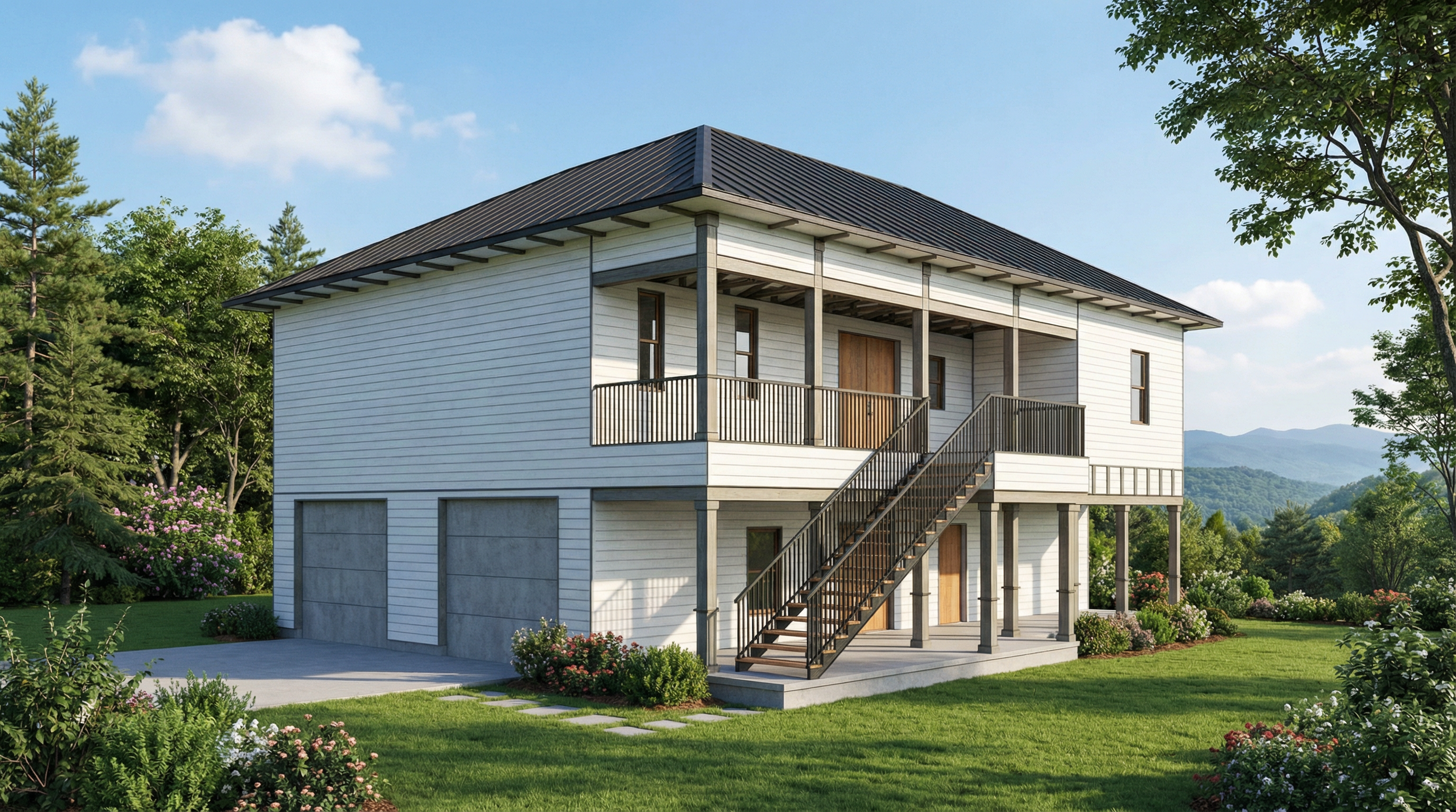convert this floor plan into a realistic isometric 3d view of a full house show the space from an elevated angle with furniture walls and details visible hamptons feel modern furniture soft tones use the same furniture as shows on the plan do not change the orientation of the floorplan