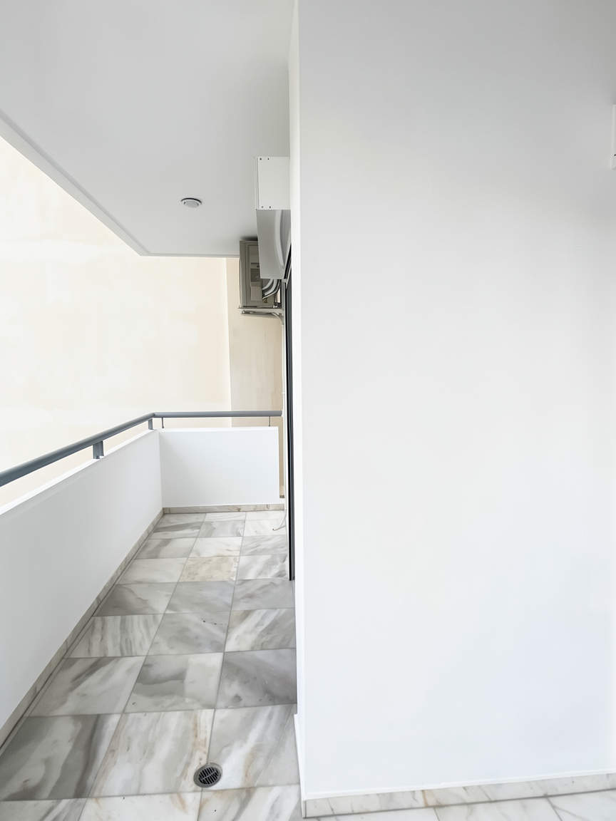 fill in the arched doorway to create a continuous solid wall and replace all wooden railings with solid walls for a more enclosed and cohesive look