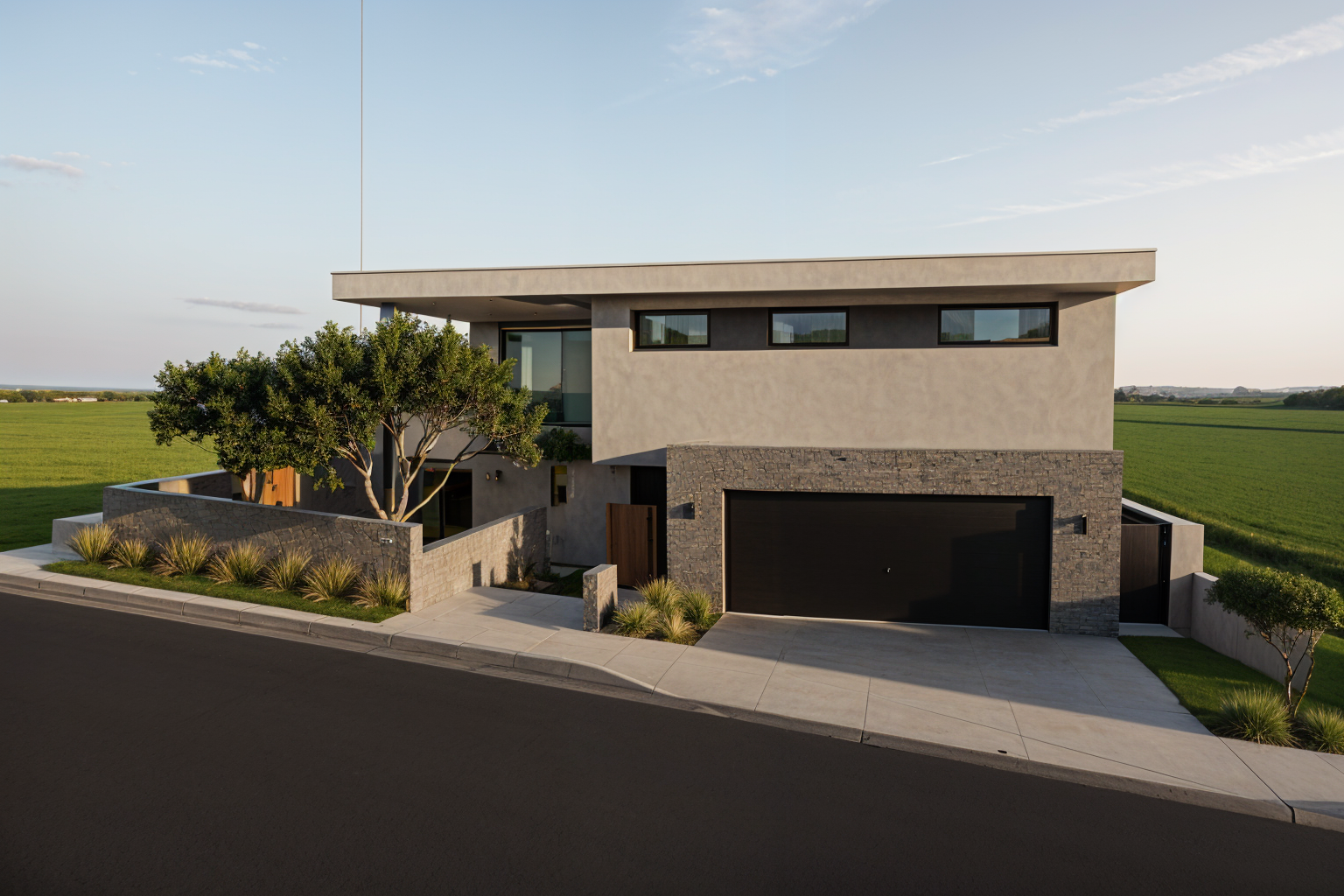 a modern kitchen with a serene atmosphere white marble countertops and backsplash glossy white cabinets with sleek silver handles and a black induction cooktop the kitchen island features elegant green stools with black metal frames the stainless steel fridge adds a touch of sophistication large window showcasing a lush green landscape under a blue sky with scattered clouds the room is illuminated by soft warm recessed lighting there s a small dining nook with a round table and a white chair accented by a small green plant overall ambiance is bright airy and minimalist