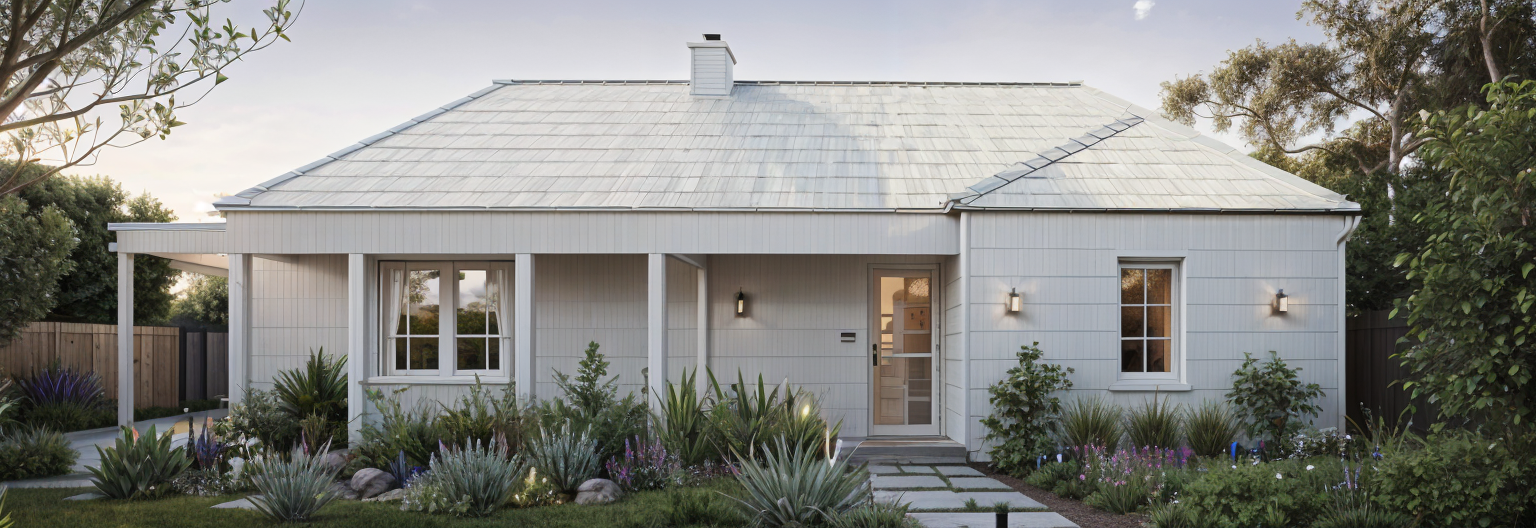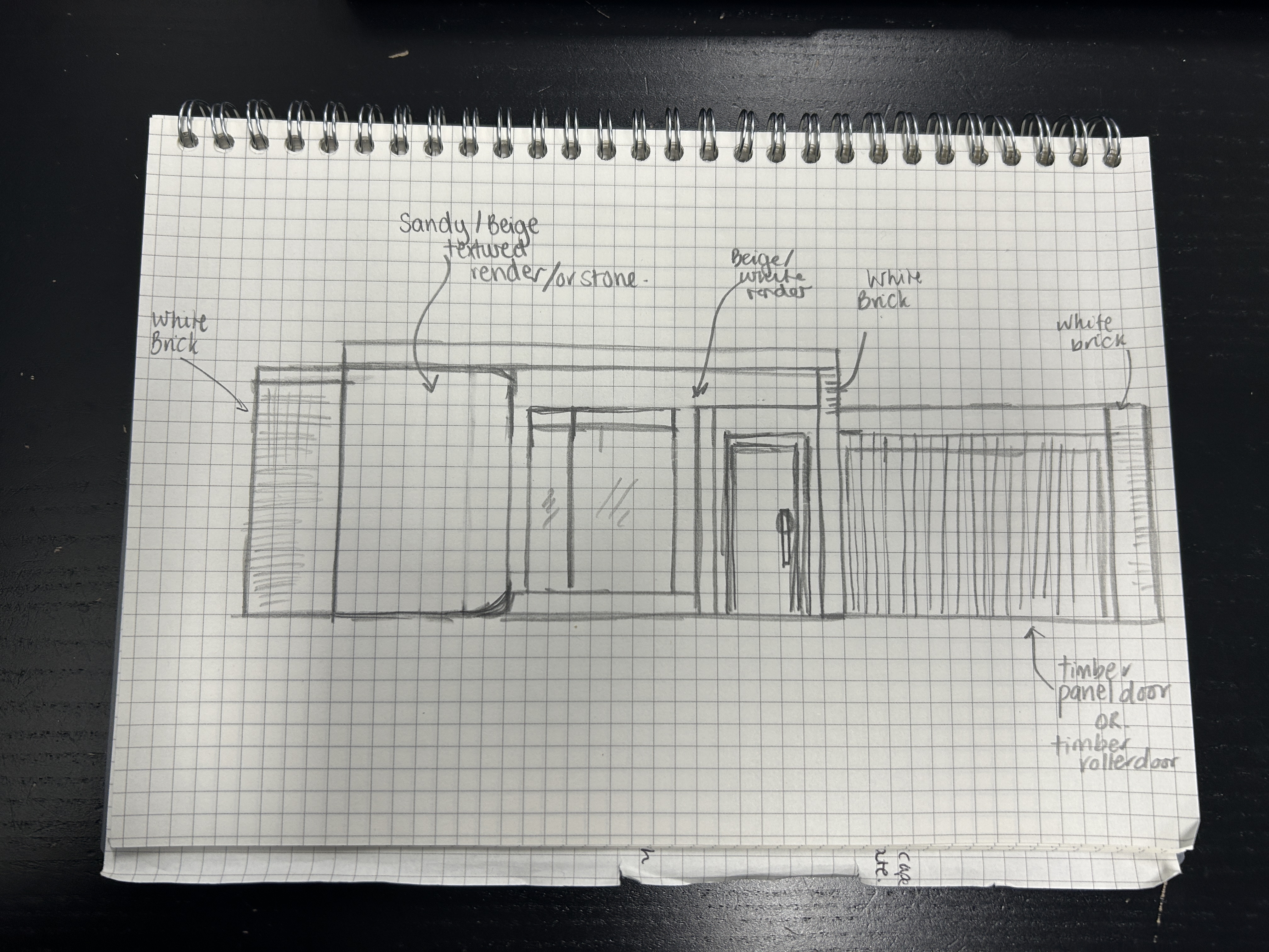 exterior shot use products such as white brick timber cladding beige textured render white windows