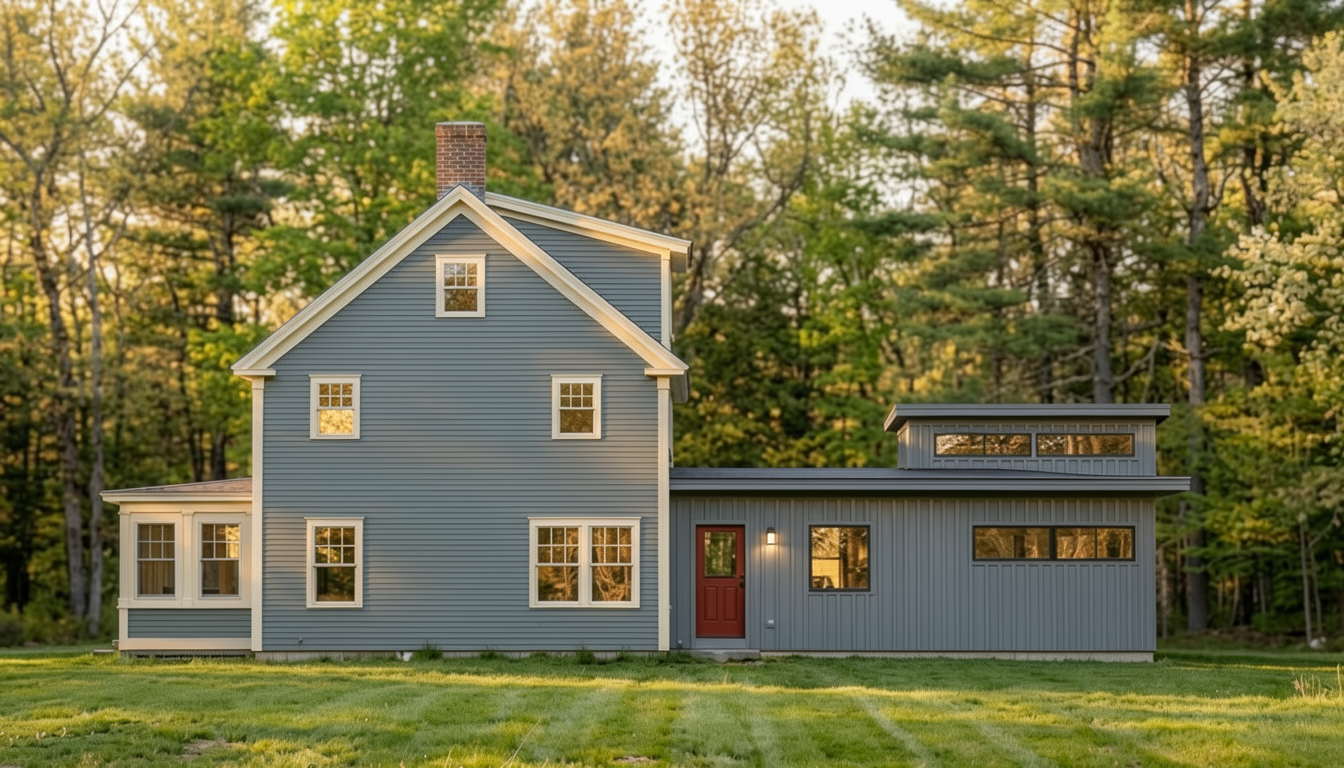 make as photorealistic as possible while keeping textures the same as selection professional landscaping with good lighting current material style just enhance standing seam metal roof and also enhance base limestone veneer