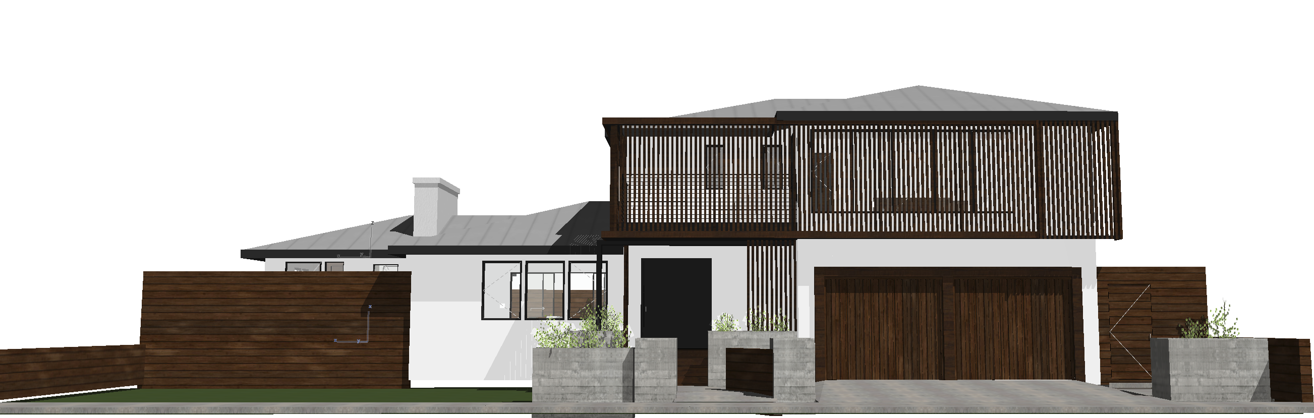 the screens can be more closed and slid across the windows and the front of the balcony the roof needs to be black standing seam metal the wall at the entry door needs to be dark wood