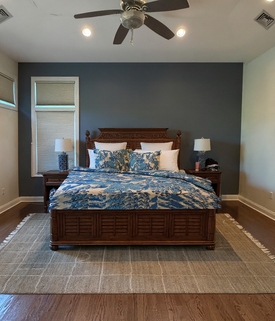 wide angle interior photography of a luxurious modern open plan living room 14mm lens ultra wide fov capturing the entire existing corner layout wall to wall with zero distortion of original architecture high ceiling preserved exact same tall frosted glass door on the left corner wall flooding soft natural daylight warm wooden cumaru style porcelain floor with glossy finish perfectly matching reference light cream painted walls with subtle texture l shaped modular sectional sofa in boucl off white with chaise longue on the left near from the camera large 3 2m x 1 8m natural oak coffee table with rounded edges 85 inch framed tv on the front wall with hidden cables built in oak shelving unit floor to ceiling on the right wall with led backlighting three pendant lights in brushed brass 40cm diameter above coffee table oversized woven wool rug in light gray 3 5m x 2 8m gallery wall with six framed abstract artworks in oak frames ceramic vase with dried pampas on the shelf linen throw pillows in cream and taupe minimalist scandinavian luxury palette in warm whites light grays natural oak and brass accents photorealistic 8k ultra hd razor sharp details professional architectural visualization serene and inviting atmosphere ar 3 2 stylize 150 v 6
