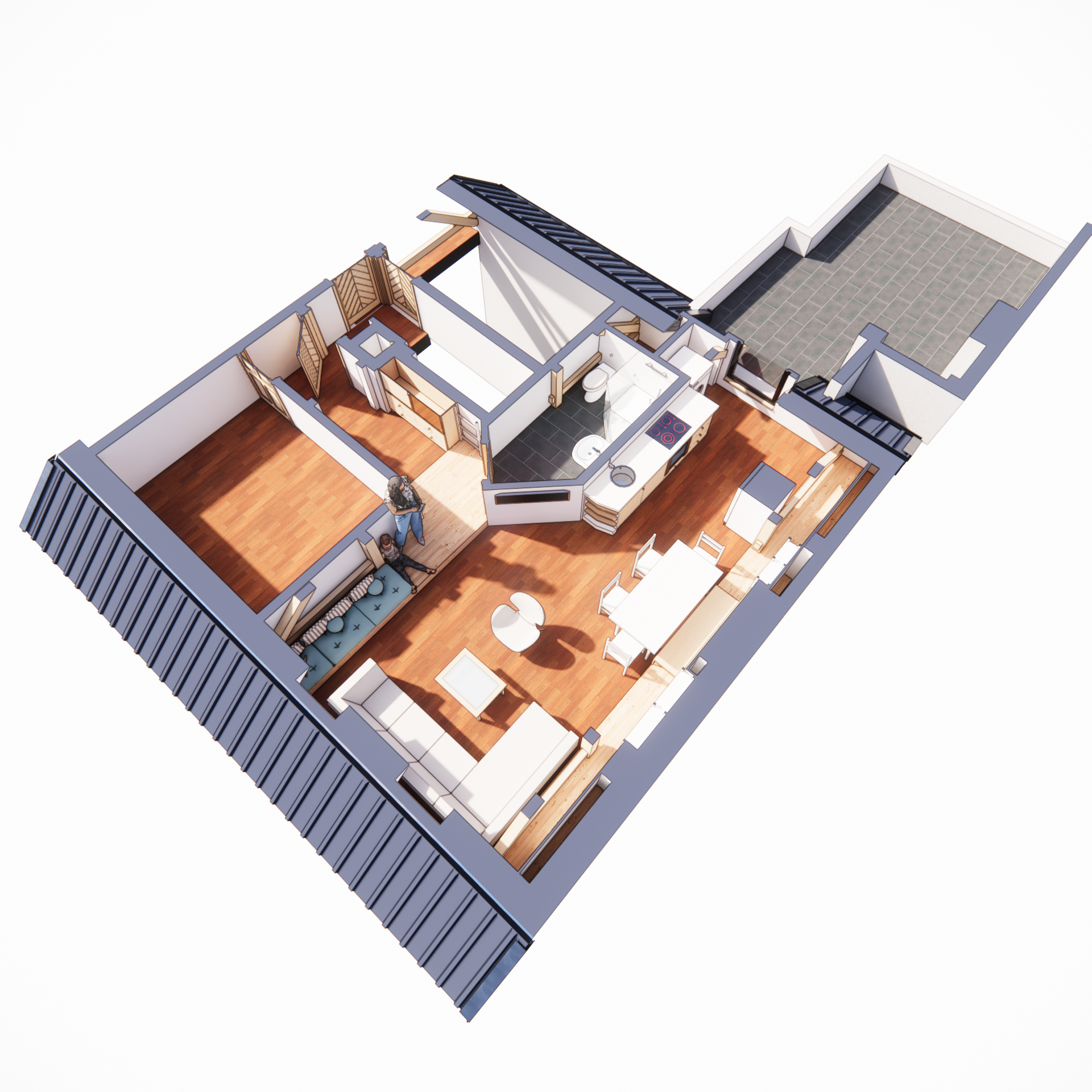 sure here s the prompt render a cozy attic living space with warm natural lighting streaming through two skylights use soft beige for the walls and ceiling to enhance warmth highlight the wooden beams and cabinetry in a rich light oak color design the spacious l shaped sofa in light gray complementing the overall tranquility enhance the floor and accent wall with a rich mahogany finish add a modern light cream swivel chair and a square wooden coffee table create a relaxing nook with teal and cream cushions aim for a serene and welcoming atmosphere capturing the essence of comfort and style
