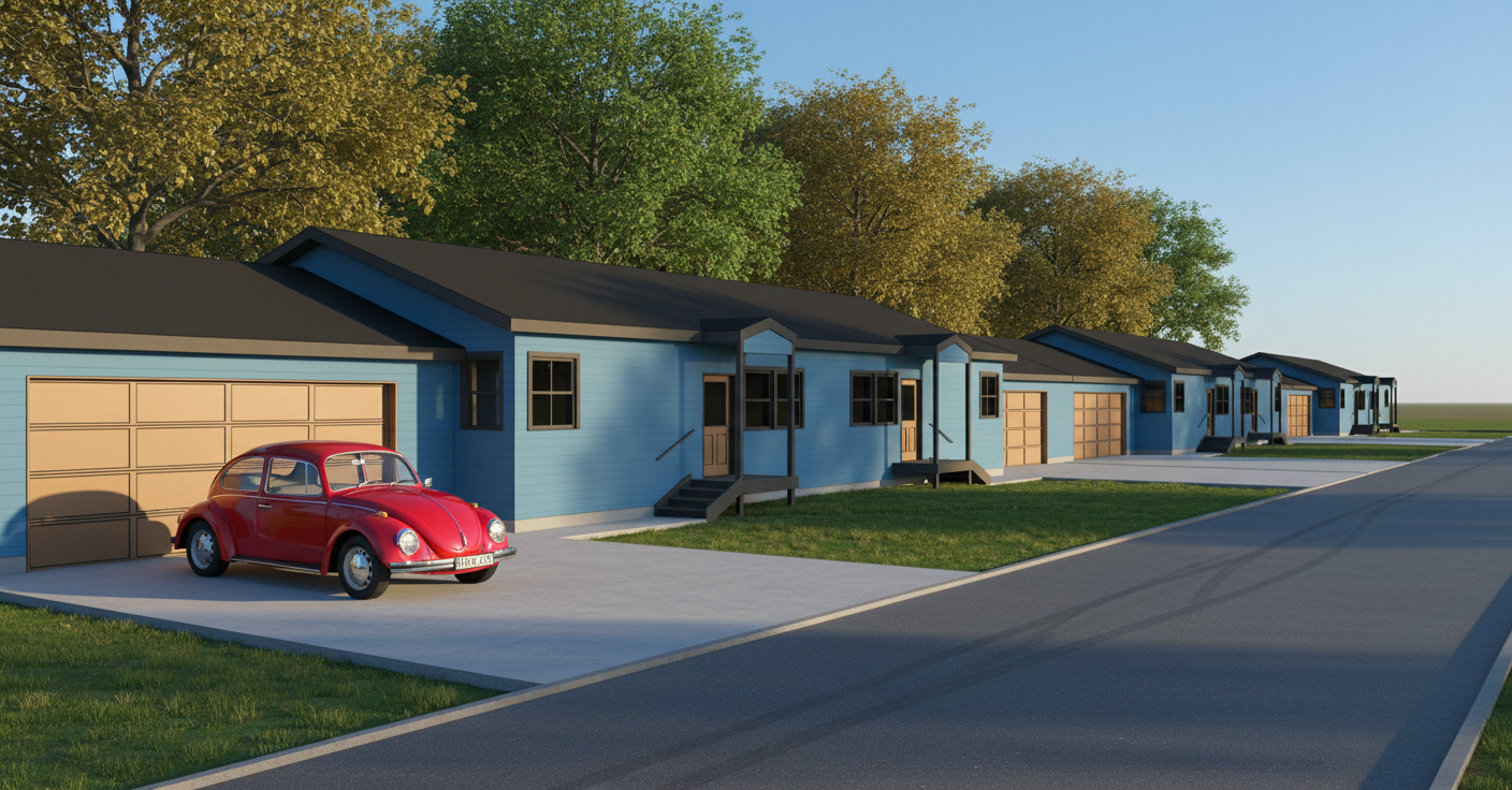make realistic model to size with dark green house and black tin roof