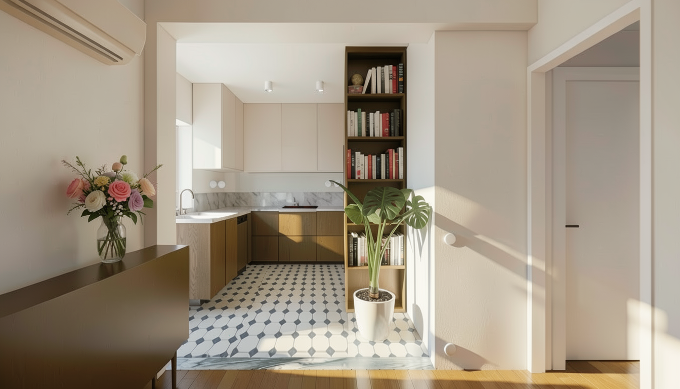 remove the vase with flowers and make the console furniture on the left look more realistic