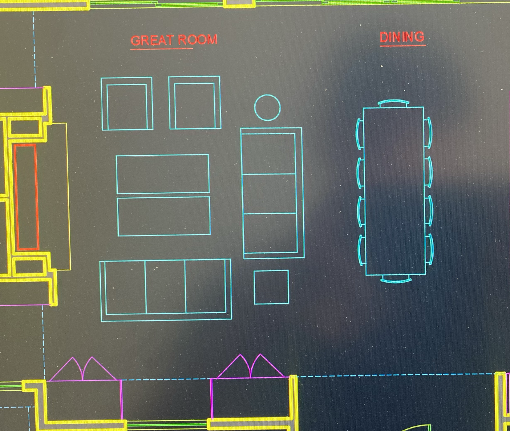 change this furniture layout to show a sofa facing the fireplace and two chairs angled in on either side of fireplace