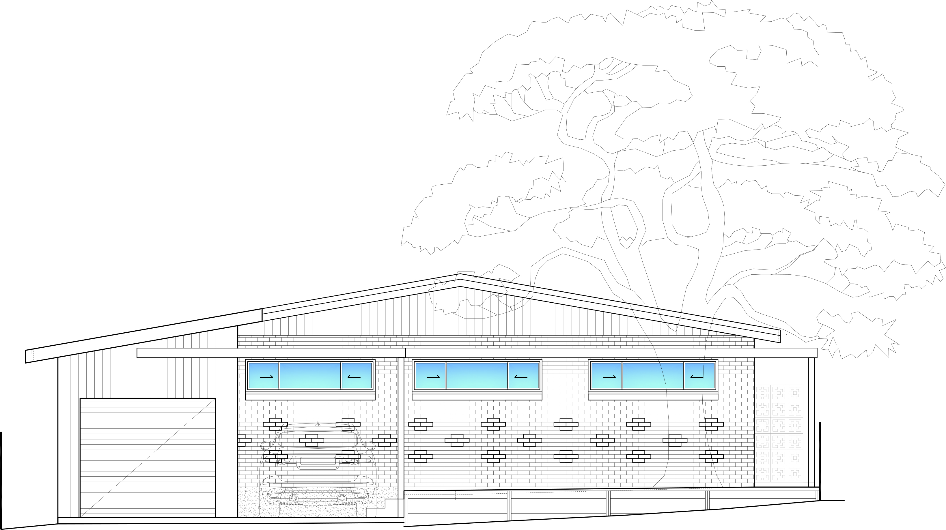 1960s red brick home with a new modern garage and carport extension with vertical clad in dulux colorbond colour wallaby with a timber slatted garage door fascia boards in wallaby