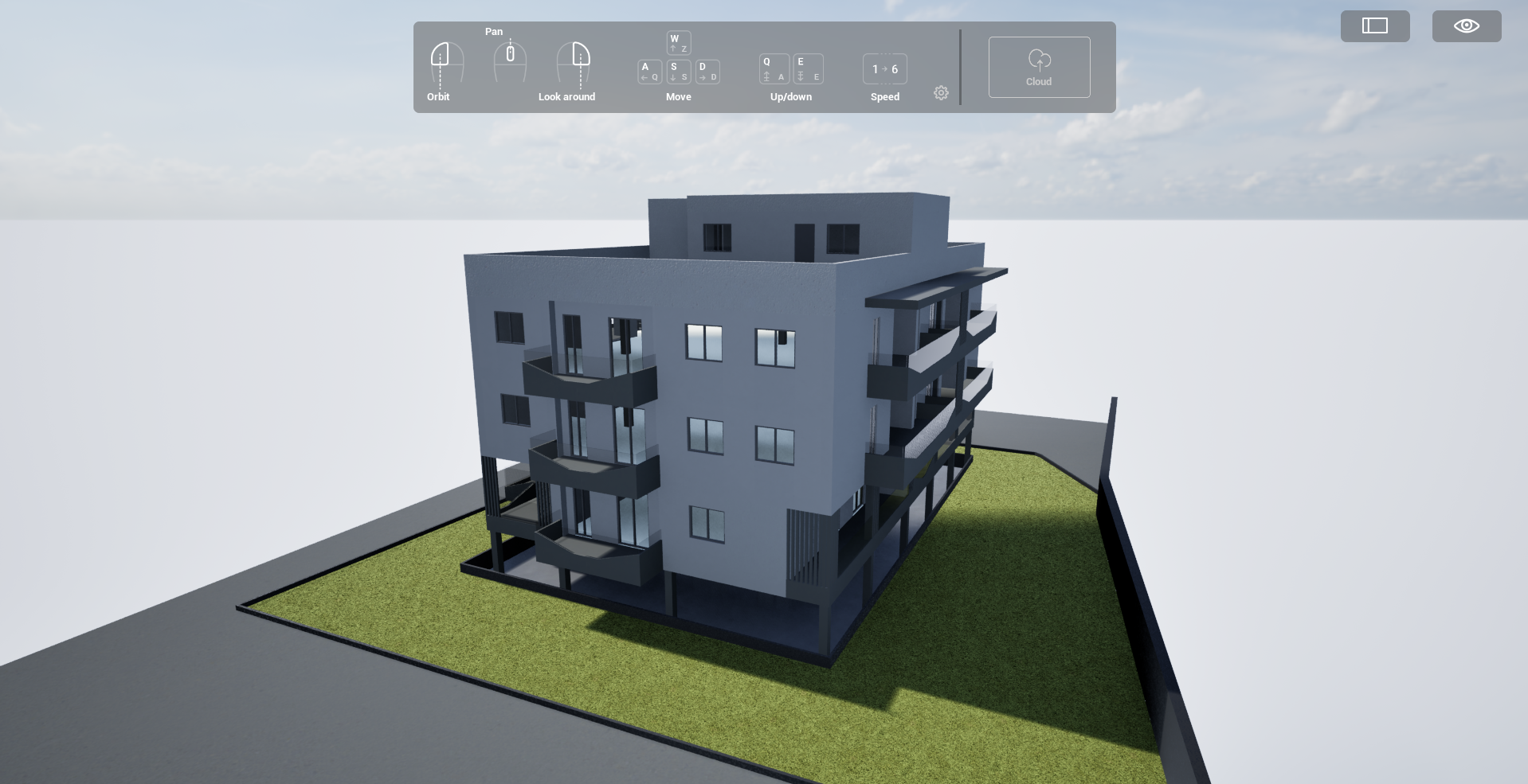 render realistico aggiungi delle piante in fiore e alberi nel giardino solo su prato verde posiziona delle macchine nel garage al piano 1 e arreda i balconi con piante fiori sedie ecc e posiziona delle persone fuori ai balconi o a piano terra in procinto per entrare puoi aggiungermi dei palazzi affianco cosi non sembra che galleggia nel vuoto
