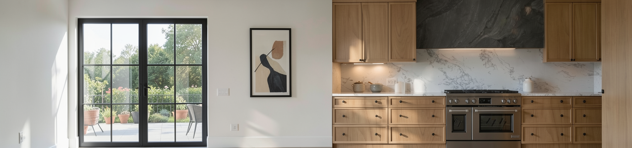 use walnut floors and white oak cabinetry to make 3d kitchen in similar style architecture