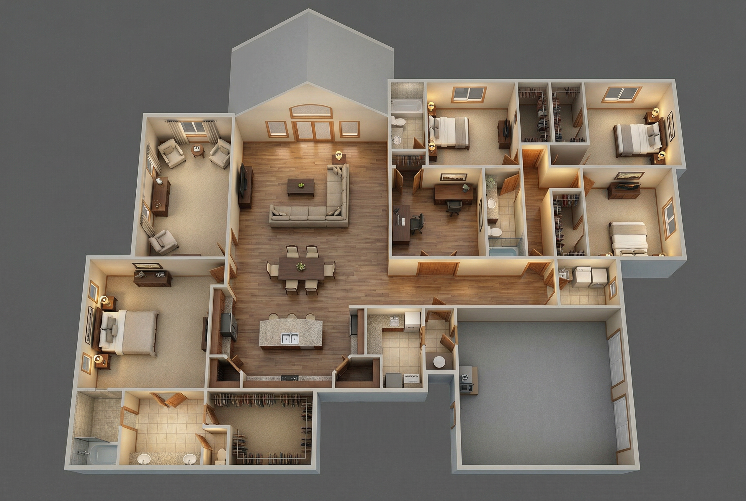 do not add plants d cor rugs lamps curtains accessories extra furniture new windows or architectural changes do not alter colors wood tones materials or finishes no stylization beyond the existing model