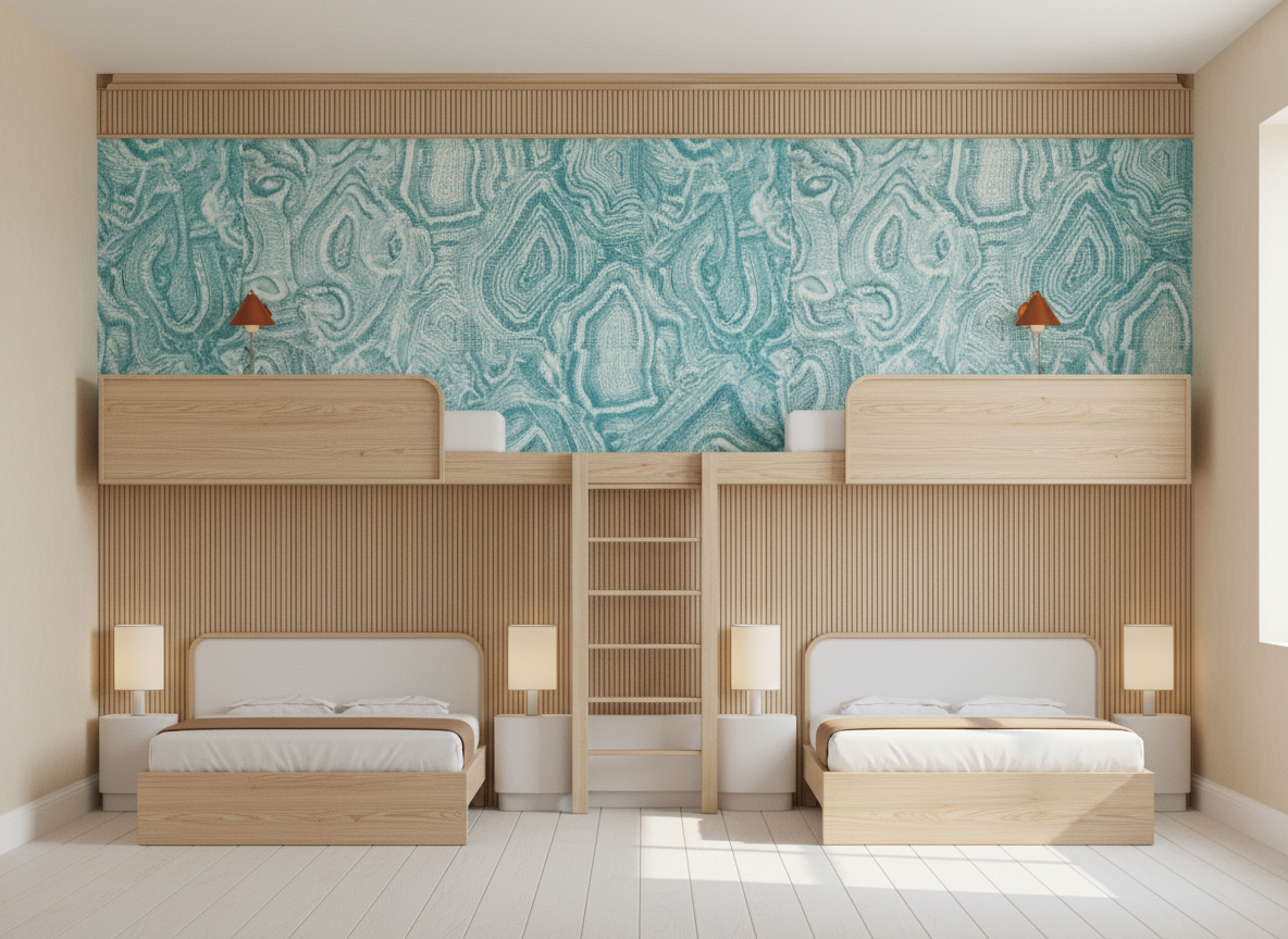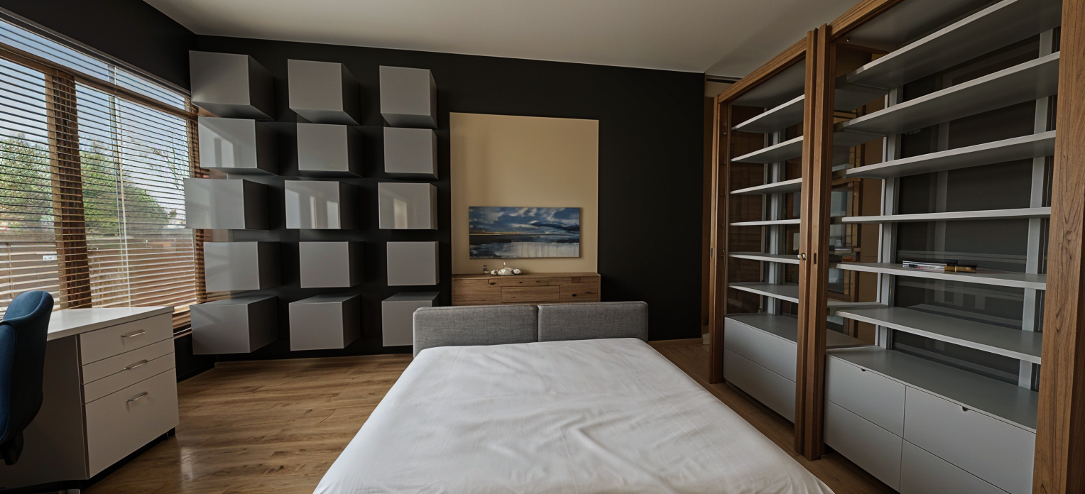 perspective shot make the nightstands red and make the beds feel longer