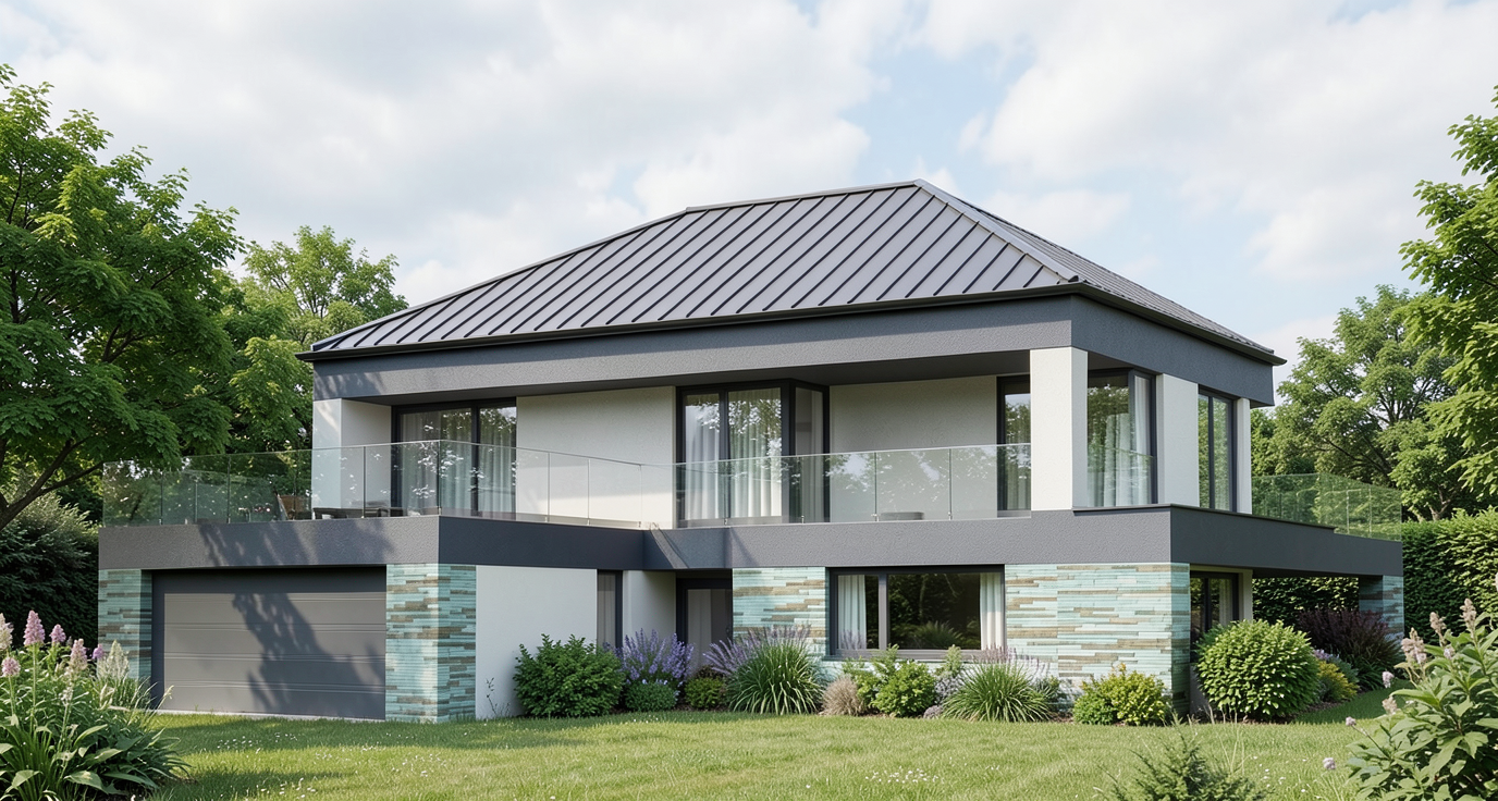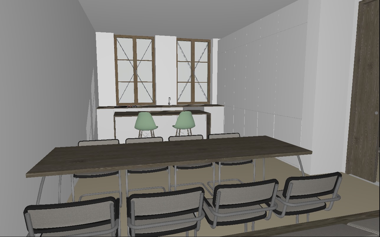 prairie style interior shot realistic dark blue cabinets with marble countertop wooden floor architecture