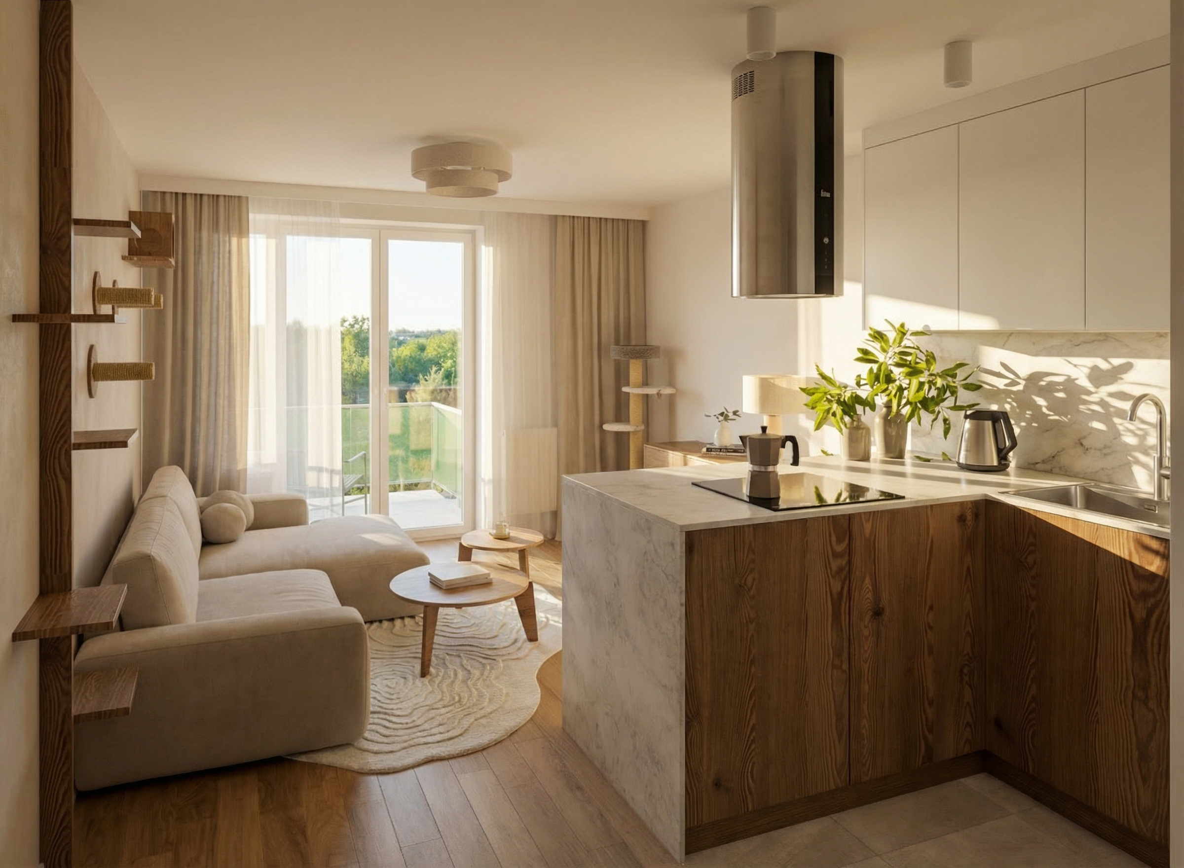 this is a multiplex dwelling which will be located in nunavut canada the environment is snowy arctic with rocks and small sized cliffs in the background maintain model geometry and aim for an 8k resolution in hyper realistic architectural visualization the atmosphere lighting should be at sunset but don t make it too dim