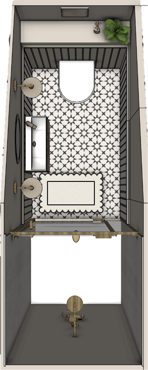 birdseye view looking down into girls en suite shower room with luxe vibes this will be used to show clients the proposed layout materials and placement