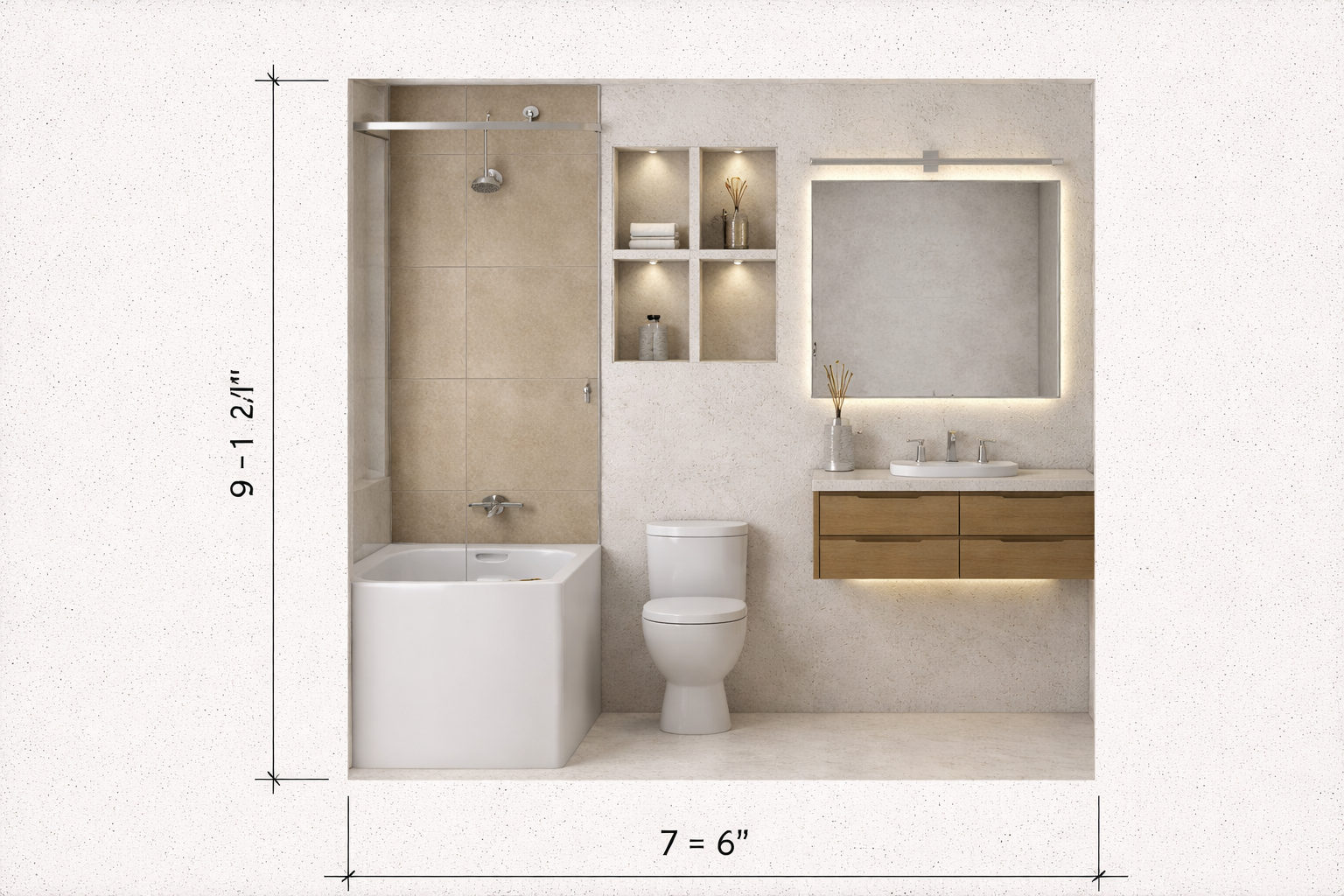make it more realisitc with large format tiles and more natural stone veining onn the shower wall give it more elegant modern sexy look