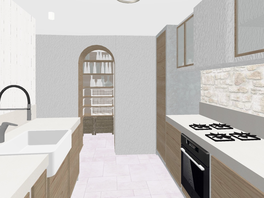 kitchen exctly as pictured but enhanced and more realistic modern but natural looking japandi space
