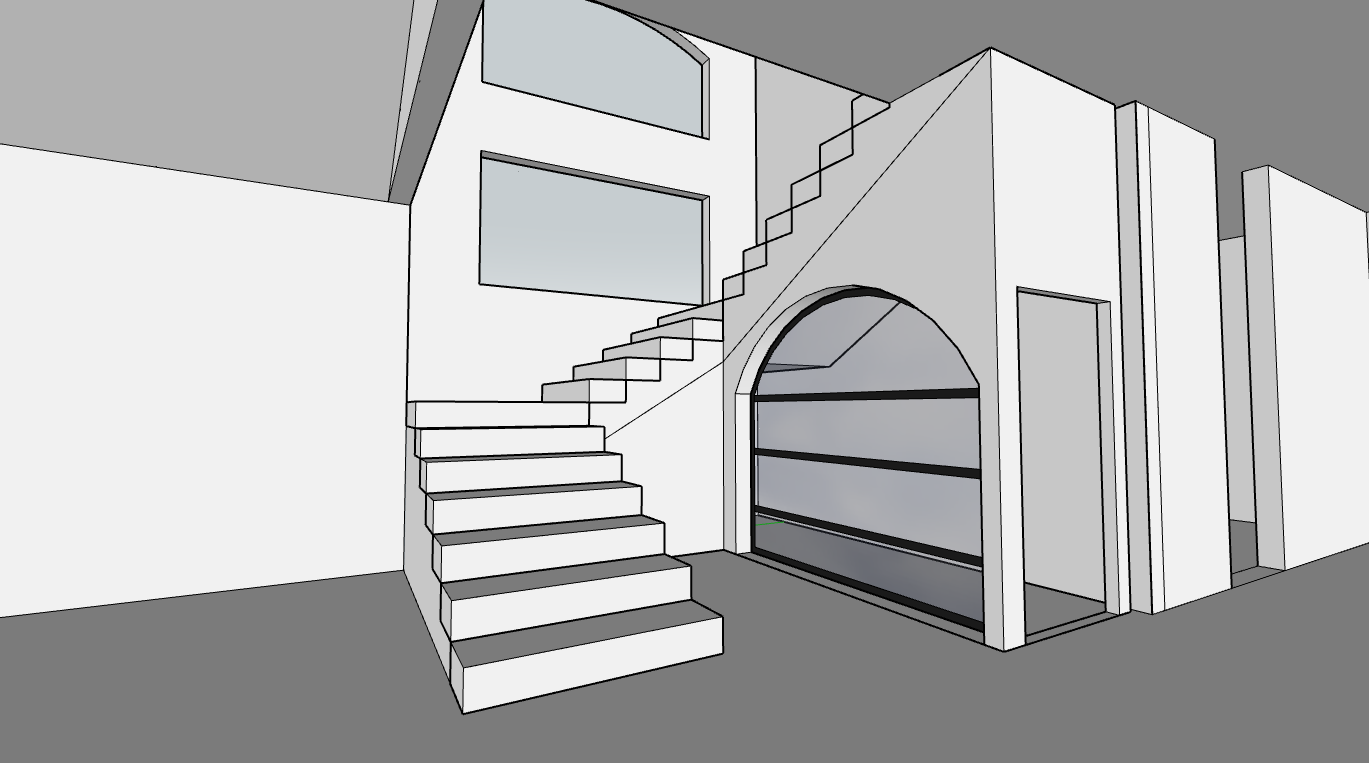 exterior shot make interior walls white add railing like the photo and wines behind arch glass