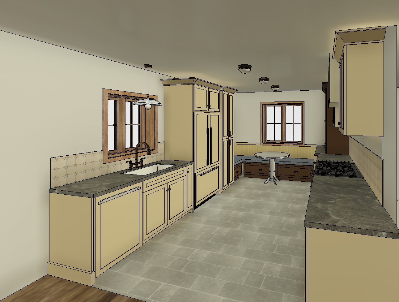 add trees outside of windows turn lights on cabinets are painted farrow and ball hay