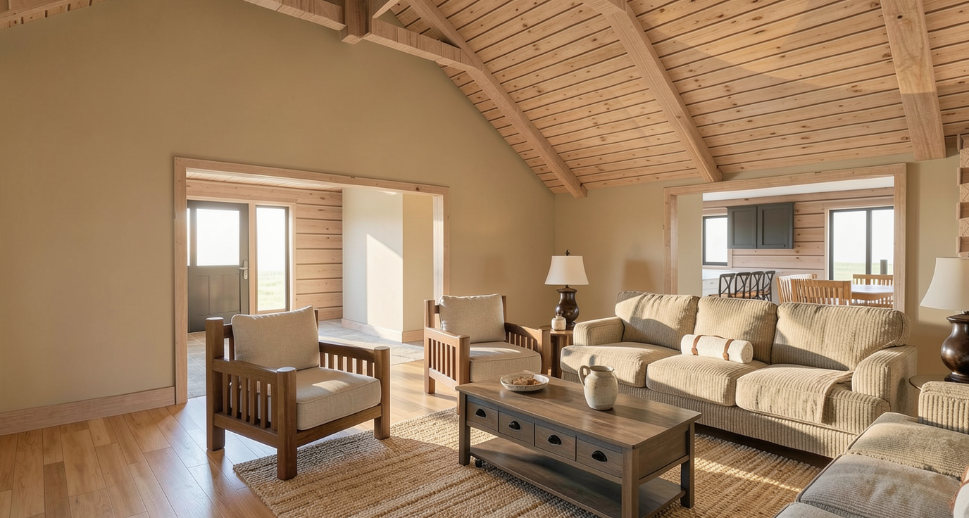 generate exact lines from this elevation beautiful elevations renders with light inside with white stucco on front walls and black tile roof top down from above with sunlight at dusk