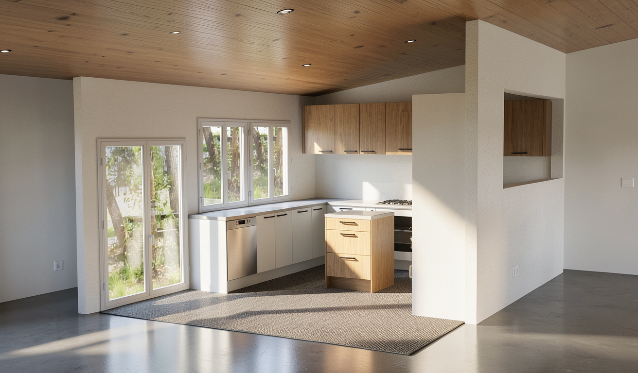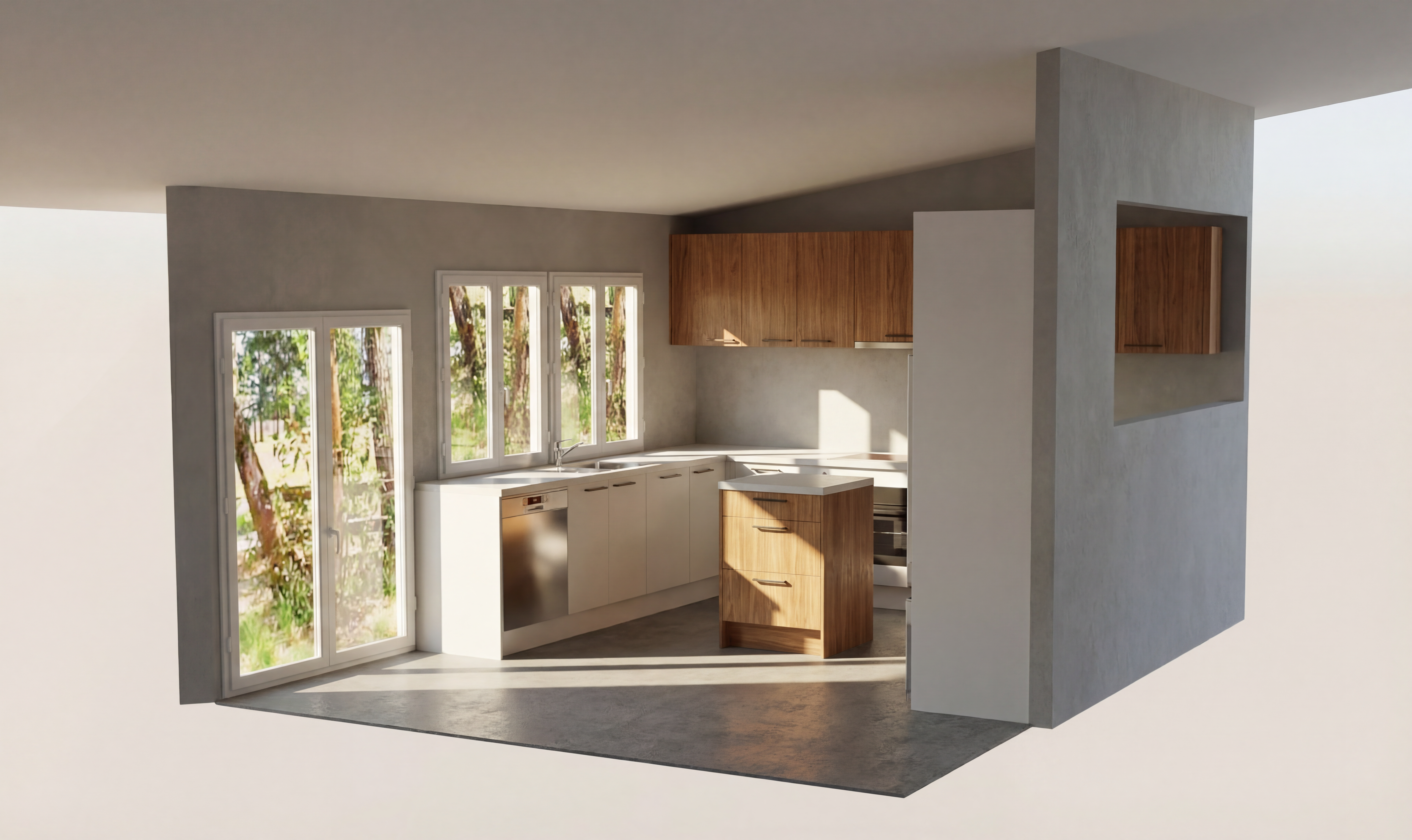 create an axonometric 3d floor plan showing furniture based on the plan layout including the curve wall extrude walls and include doors and windows maintain original plan proportions clean modern interior style soft shadows no perspective distortion bird s eye axonometric view