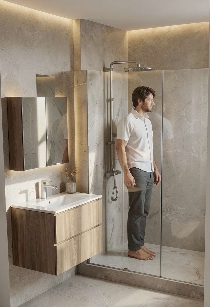 salle de bain moderne intemporelle respecte les formes meuble vasque