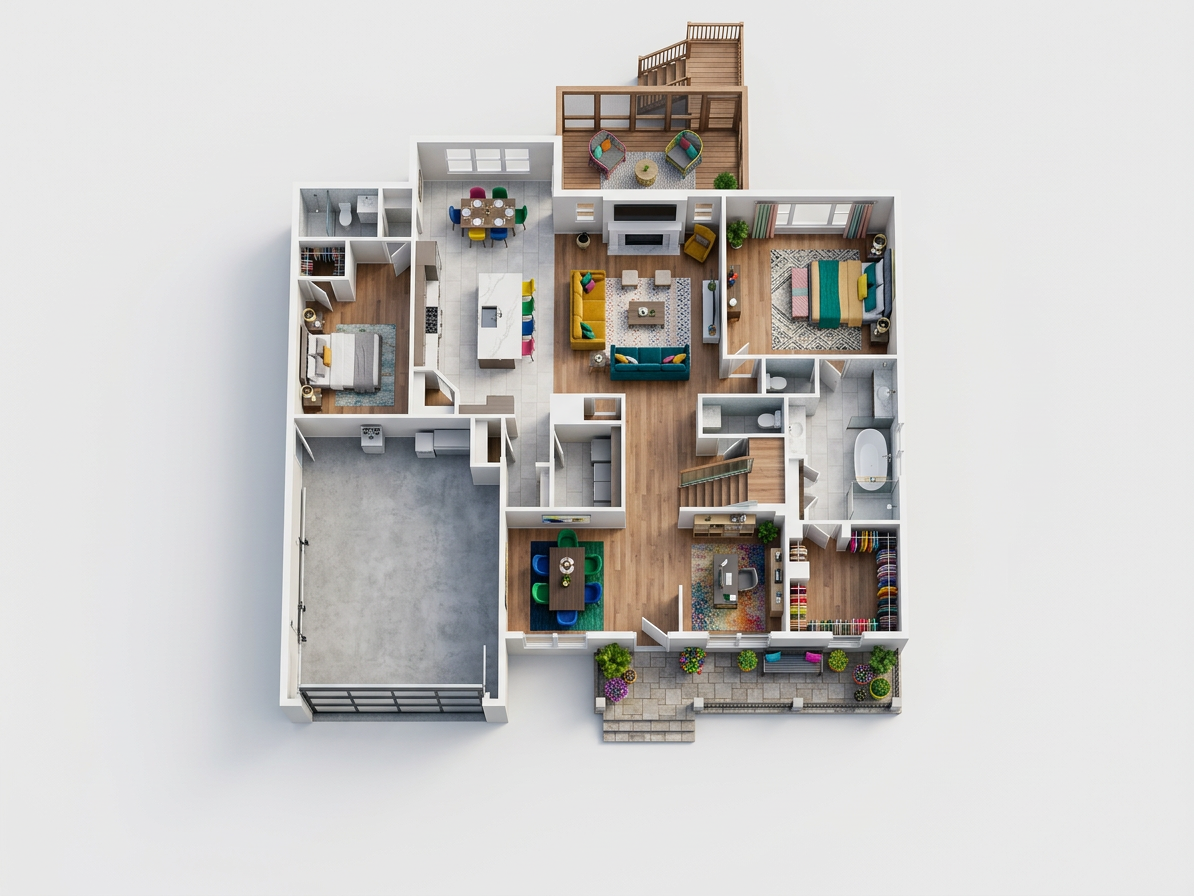 convert this floor plan into a realistic isometric 3d view of a full house show the space from an elevated angle with furniture walls and details visible das skandinavischer stil wei e beige m bel parkett aus landhaus diele weise innent ren use the same furniture as shows on the plan do not change the orientation of the floorplan