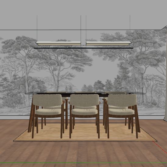 architectural interior scene fully preserving realistic materials and textures wood concrete glass metal textiles and a rattan rug whose material and texture should be fully respected table with a glass top in the center of the room empty soft natural light from windows combined with warm artificial light highlighting details realistic perspective accurate shadows and reflections furniture and objects in original proportions photorealistic style ultra high resolution subtle depth of field background shows a historic modernist city from above focusing on rooftops floors and building heights without showing the street level colors and materials true to reality no artistic stylization