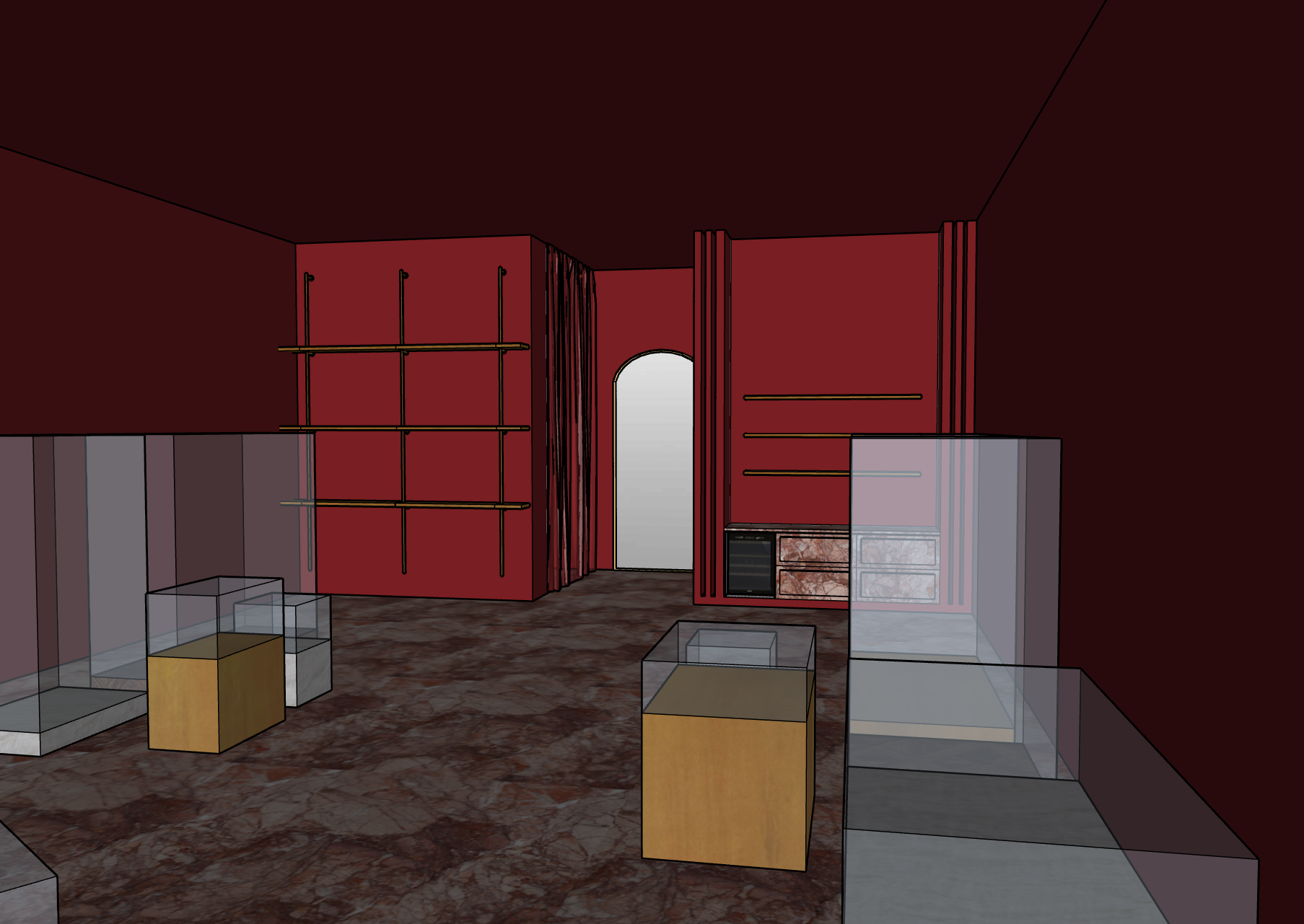 modernist enhance walls tp glossy red with walling detail and make ceiling red linen flwoing architecture