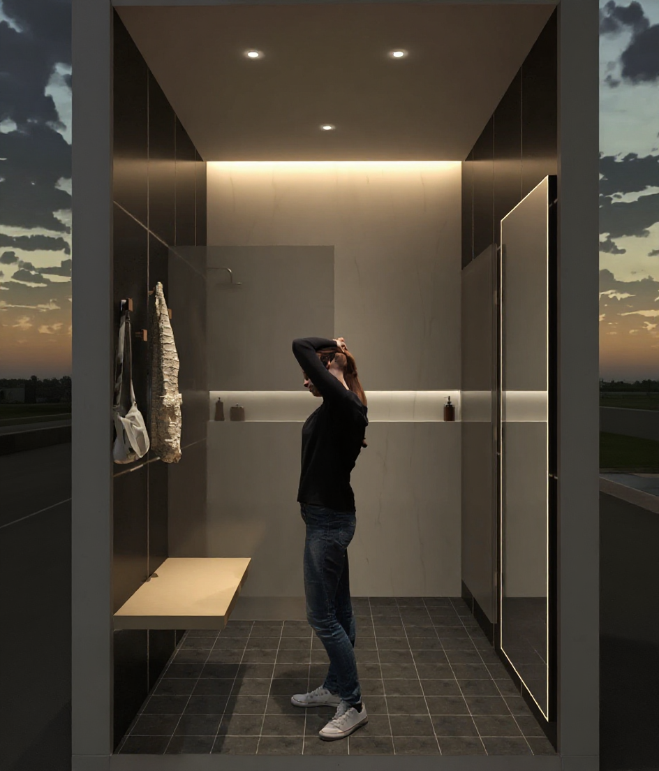 convert this photo into a technical drawing without altering the person the environment the office may be modified into a black and white line drawing with technical details and dimensions etc