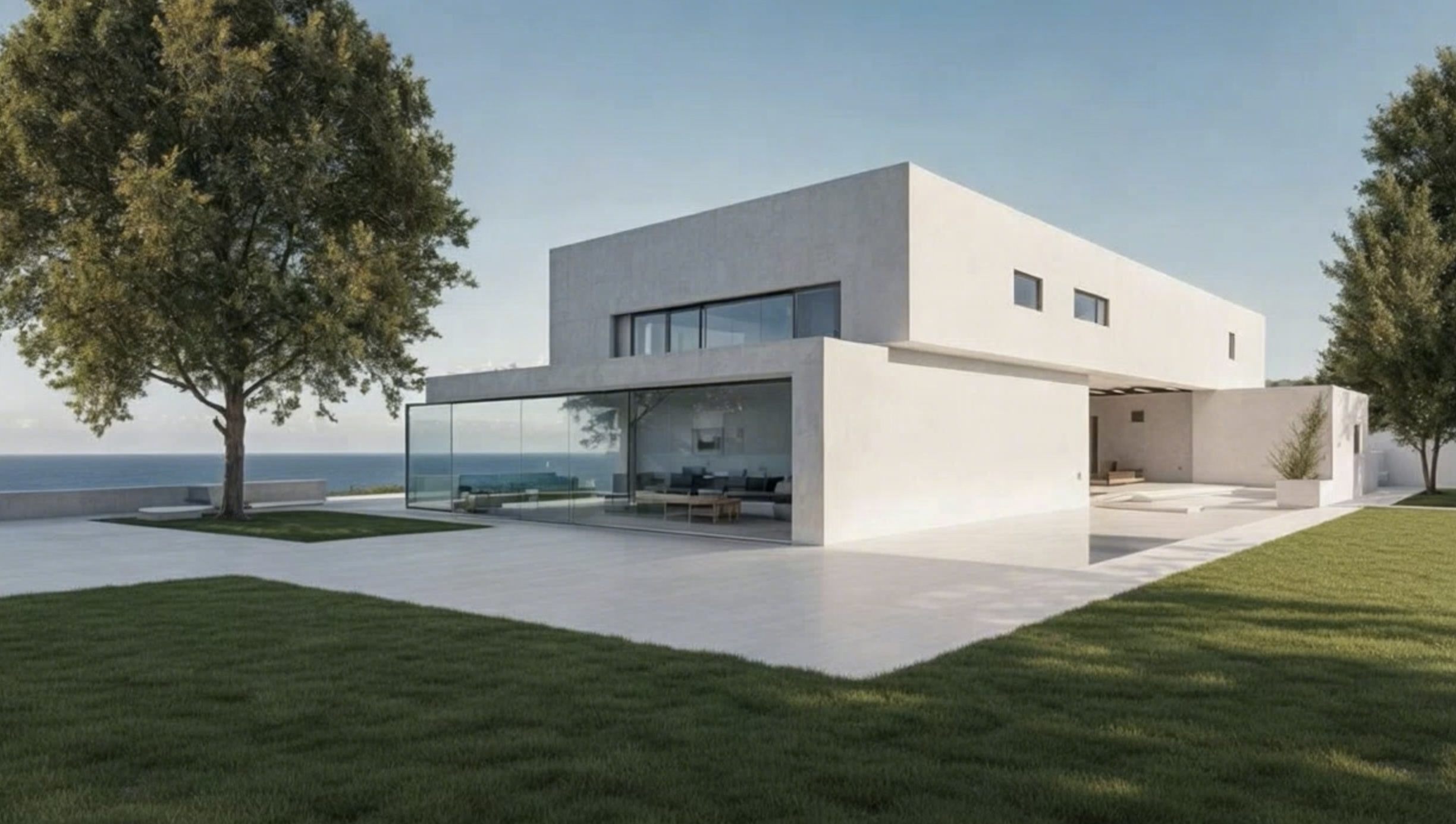 exterior shot lush french garden sunny sky with view birds flying facade white paint with wood elements no pool no water