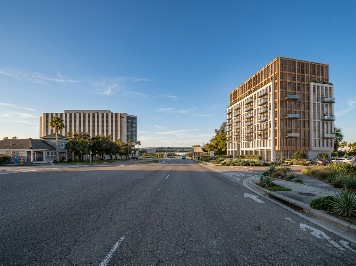 match provided rendering style black and white hand drawn rendering style no colors with large oak trees sidewalk to front door