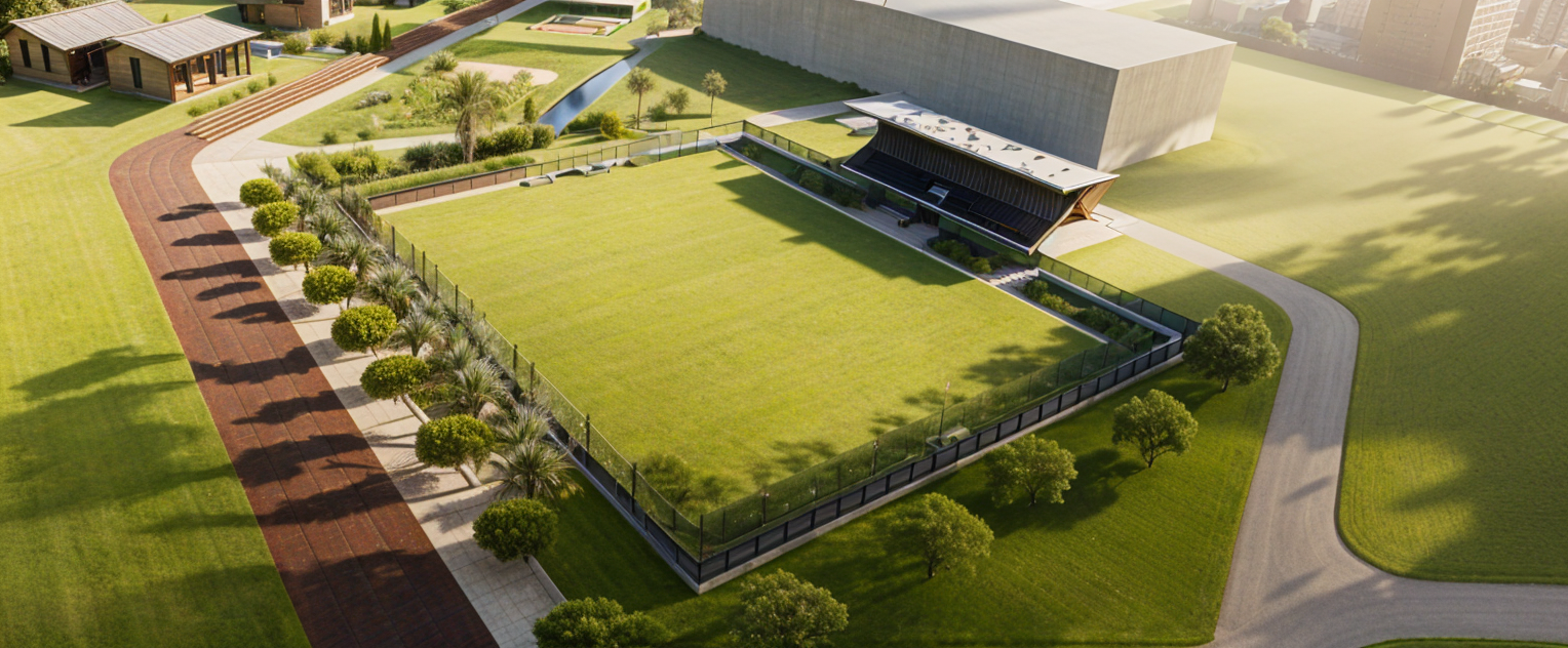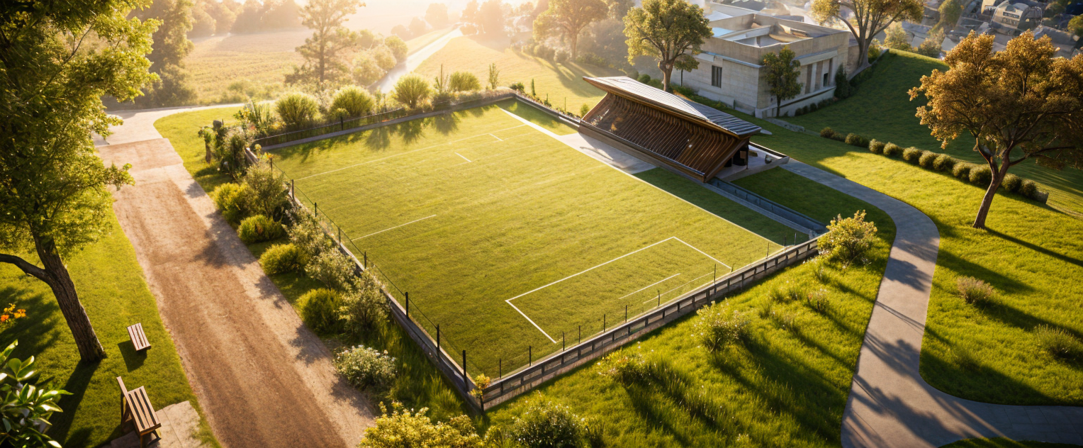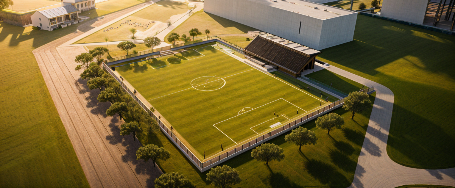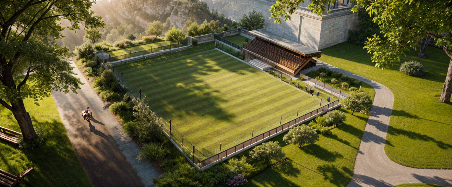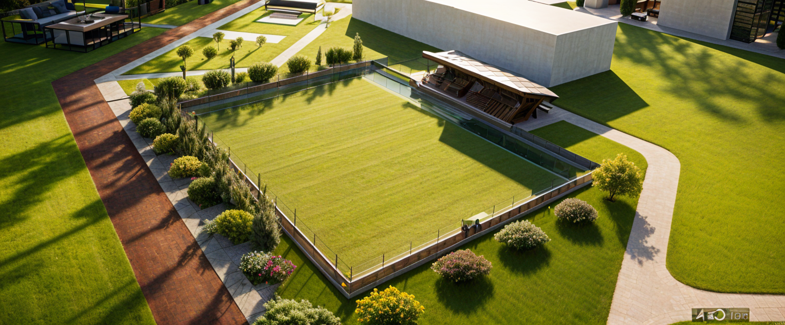 modernist exterior shot an exterior residencial village render in a contemporary way the materials that your are going to use are black steel wood accesnts glass 2stroies tall at the center of the house there is a large curtain wall you can see trougth it a spiral stair at the front of the house there is motor lobby and in the center is a water mirror and in the enviroment there are a lot of plants and trees a modern minimalist architectural building facade with balconies a large light brownish gray concrete wall forms the foreground with a dark brown wood paneled entryway a circular dark stone water fountain is centered in the paved courtyard the building s roofline is sloped with dark wood beams and supports large clear windows are visible within the structure landscaping includes low green bushes around the building the scene is brightly lit with a clear blue sky overhead the composition is symmetrical with the fountain positioned centrally the perspective is directly in front of the building s entrance the overall style is contemporary and refined evocative of a tranquil resort or exclusive residence the building s exterior is simple and elegant showcasing muted tones architecture