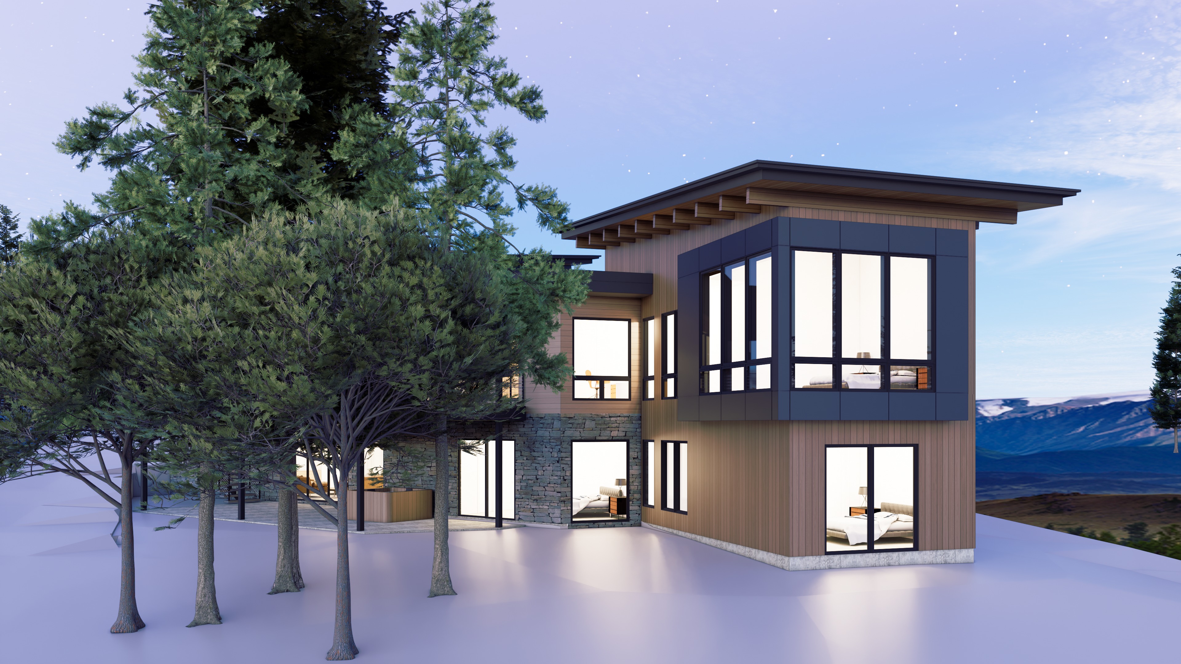add soft light and subtle shadow that bleds out of the house onto the snow outside don t darken the house at all make sure the material and colors are still visible