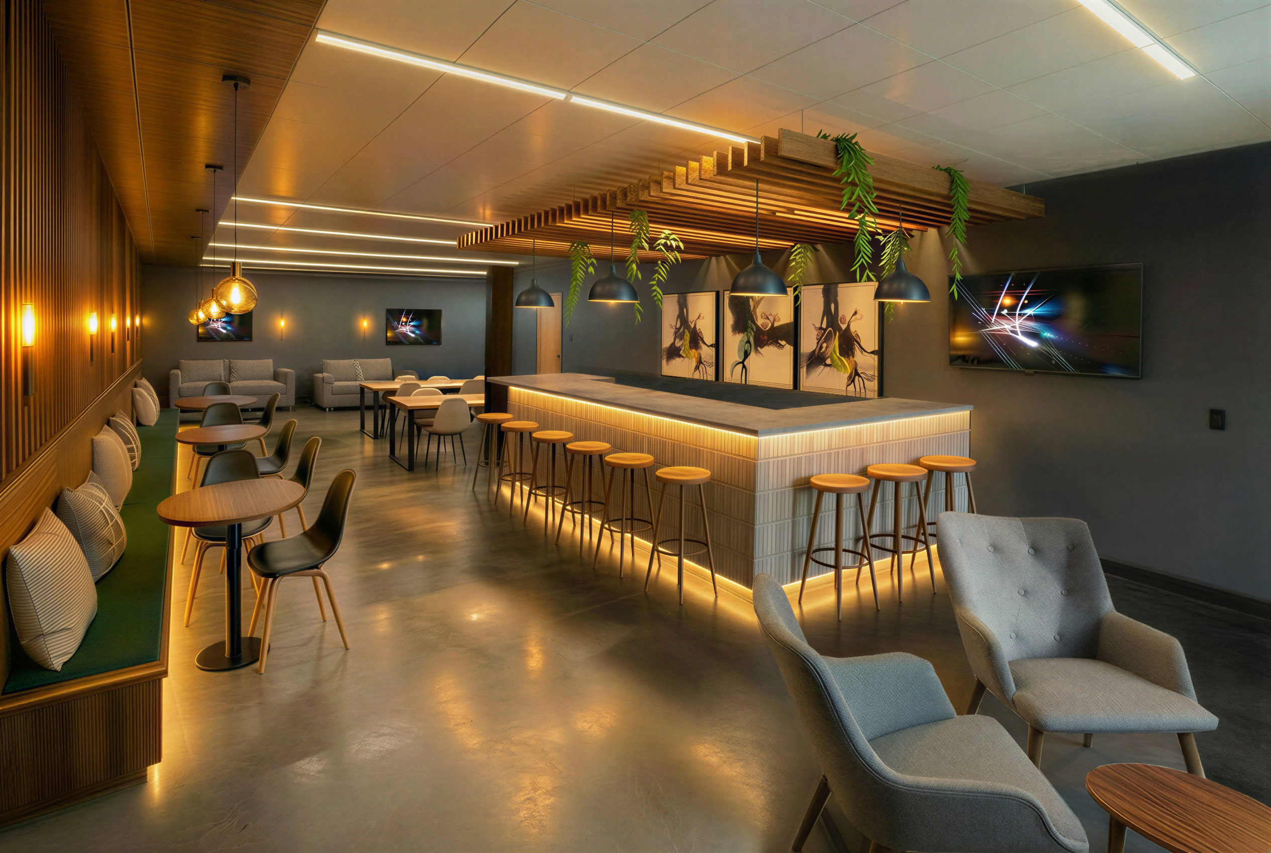 move the sofas apart a little more add some green throw pillows on the sofas