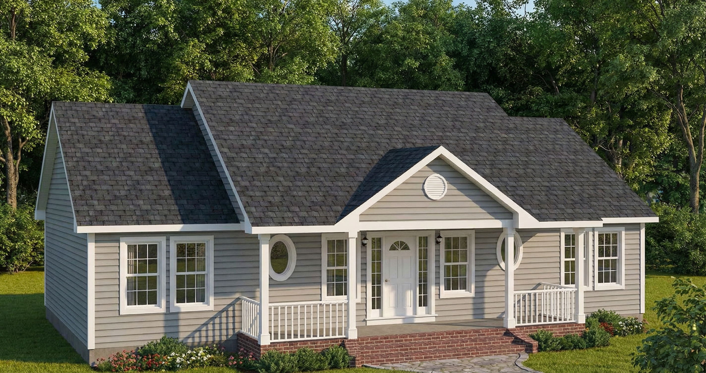 keep the architecture exactly the same do not change roof shapes do not add stone to the garage do not change window sizes or locations stone refined cut limestone at the entry only larger ashlar stone blocks smooth face limestone warm light beige color tight joints elegant and polished appearance siding vertical wood board and batten siding deeper battens and stronger shadow lines visible natural wood grain rich warm grey brown stain matte finish driveway large format rectangular stone pavers mid tone grey beige limestone paving subtle color variation more uniform color not patchy high end european estate style driveway keep black windows black metal garage canopy black metal entry canopy main roof dark charcoal shingles secondary roofs black metal lighting soft warm evening light photorealistic rendering