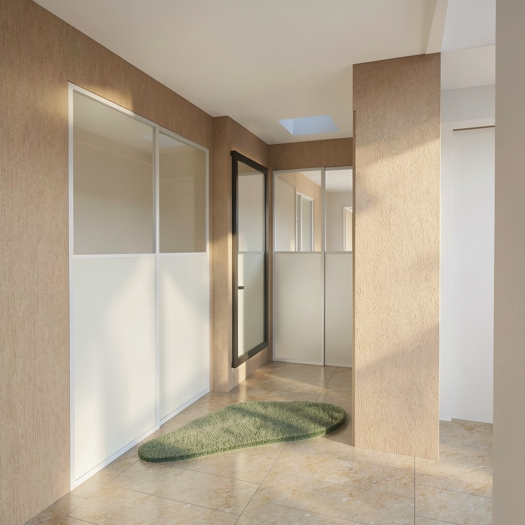 ground floor facade is in dark grey stone color and first floor facade is in dark green color roof is in anthracite black color garage is in stone marble color and on the garage roof there is metal railing with small beams remove every furniture doors and windows are in black color