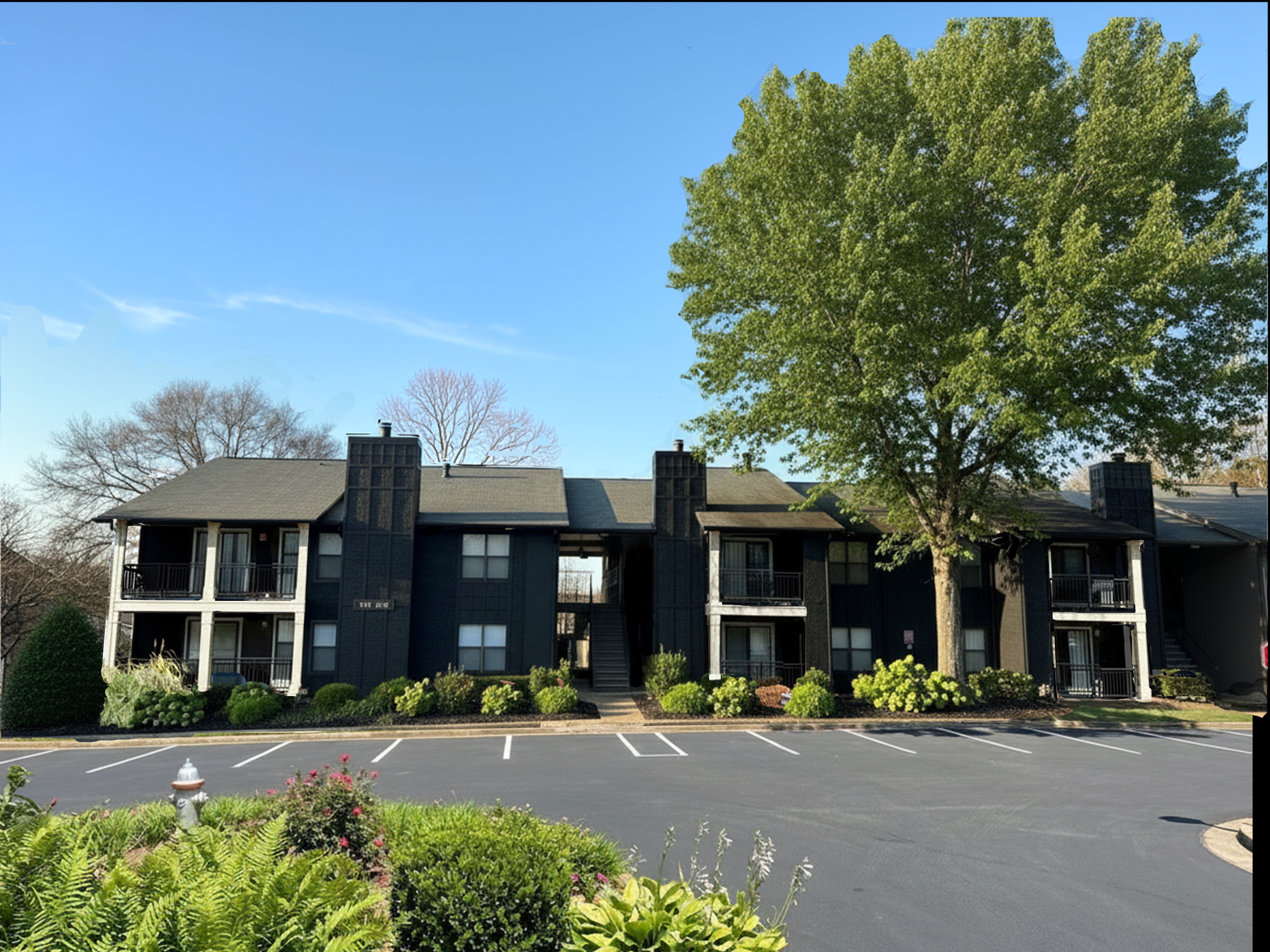 window and door trim painted white keep building geometry and camera angle the same show landscaping native to atlanta ga in late winter early spring
