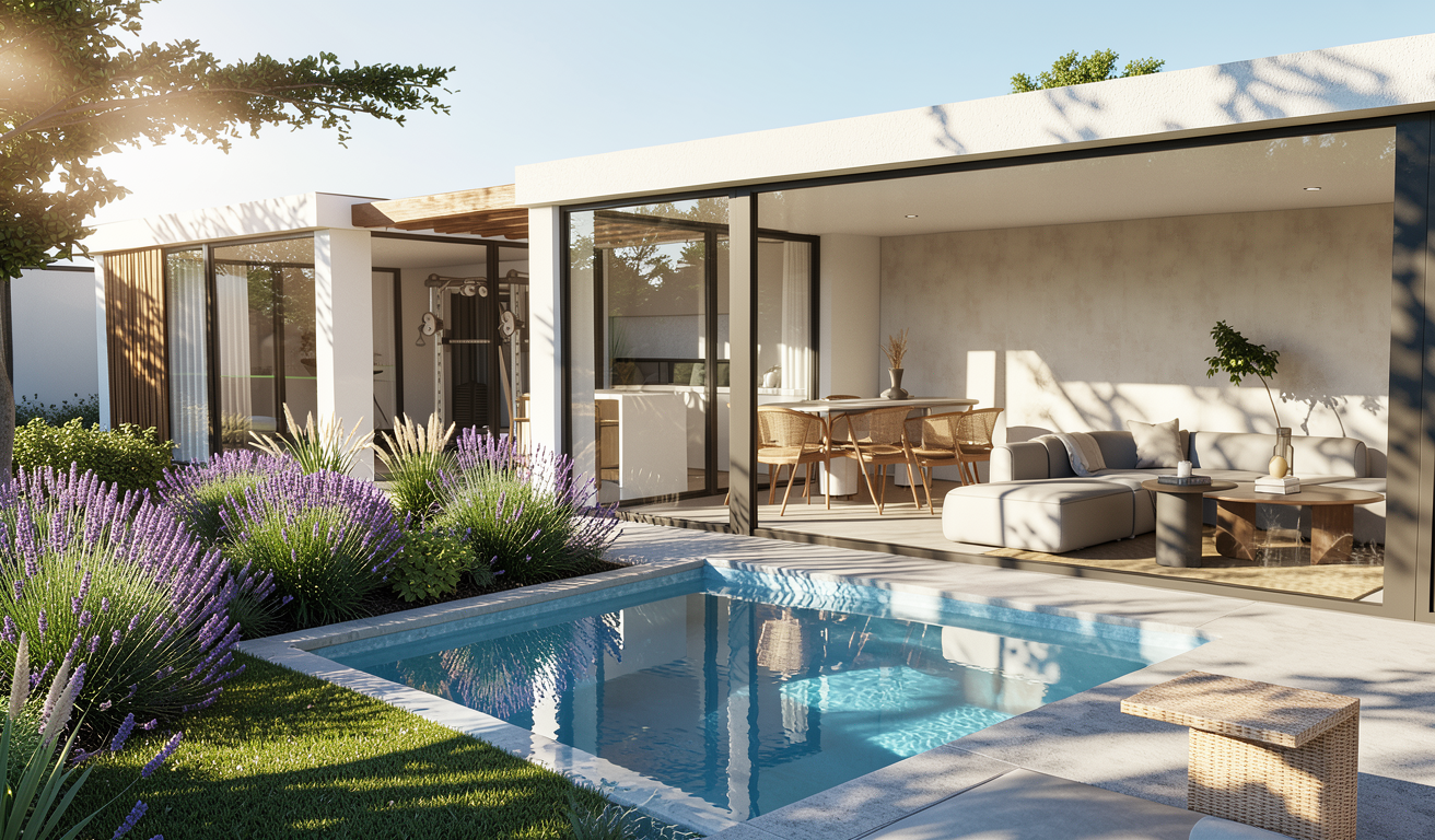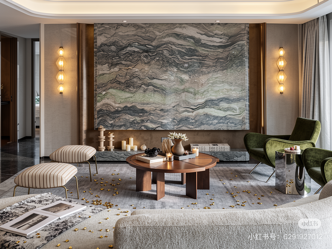 transform this exact living room into a coastal luxury style while keeping the same layout walls openings and proportions add floating minimal bookshelves on the left wall styled with a few neutral books and decor integrate a sleek modern tv into the design in a clean subtle way use a coastal luxury palette warm whites sandy beige tones light natural wood linen textures soft stone elements and airy fabrics allow natural light to feel soft and diffused choose minimalist furniture with organic shapes and textured rugs add subtle coastal decor like ceramics and driftwood accents keep the space uncluttered elegant and serene no gold colors high end calm sophisticated coastal interior styling