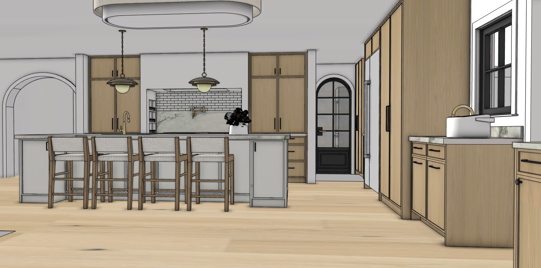 add soft lighting to the pendant over the island
