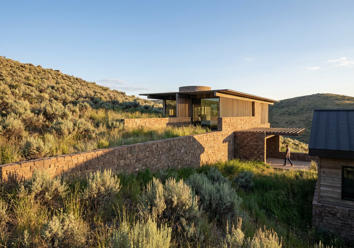 create 1 3d rendering of this home a dark siding light stone veneer white windows light wood gable accents and posts dark wood front door and garage doors