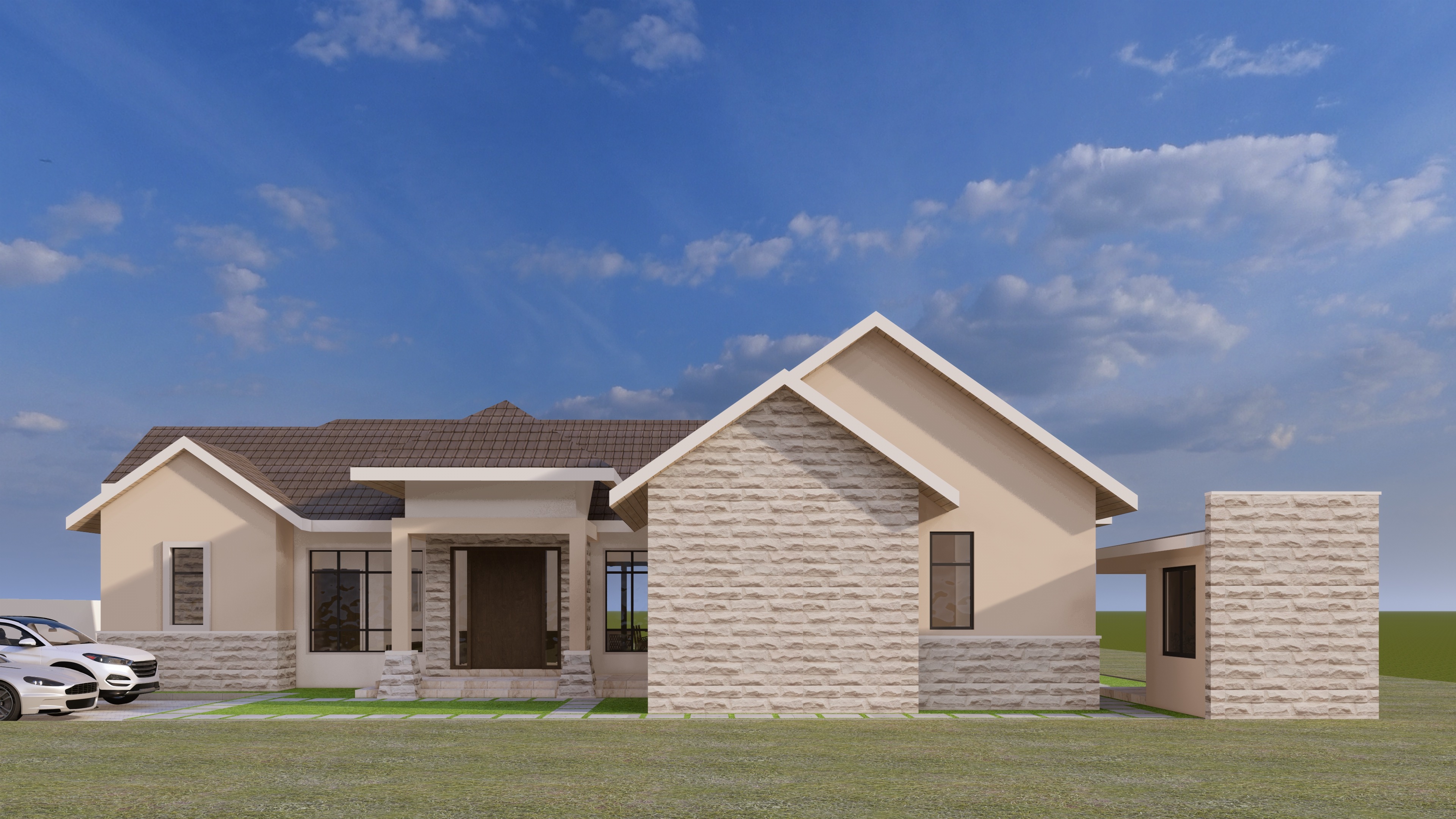model of a house add a few trees in background for context add some vegetation including floral ones add evenly spaced and well positioned light sconce