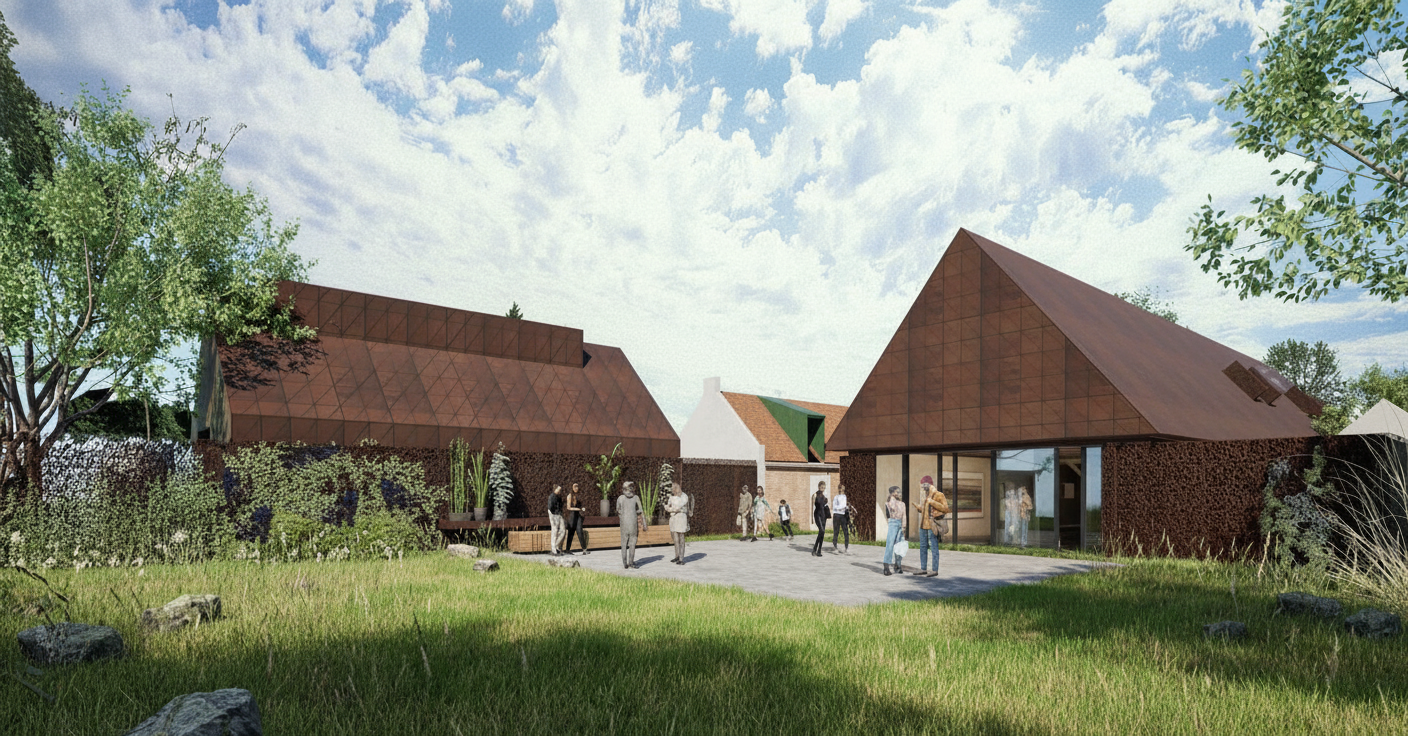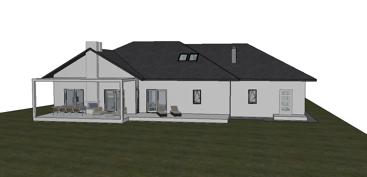render a modern bungalow style house with a sleek minimalist design the roof is dark gray with subtle texture providing a contemporary feel the exterior walls are crisp white highlighting clean lines and simplicity windows are reflective allowing sunlight to create dynamic patterns the garage door blends seamlessly with the facade in a shade slightly darker than the walls surround the house with a lush verdant lawn and add a paved driveway in a muted gray the atmosphere is serene and inviting bathed in the soft warm light of a late afternoon sun casting gentle shadows that accentuate the architecture